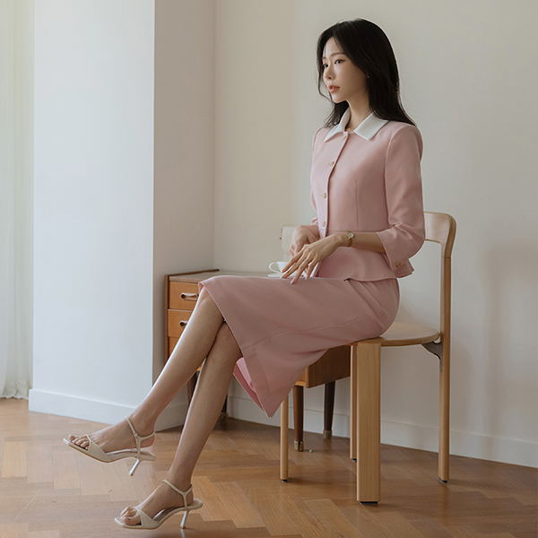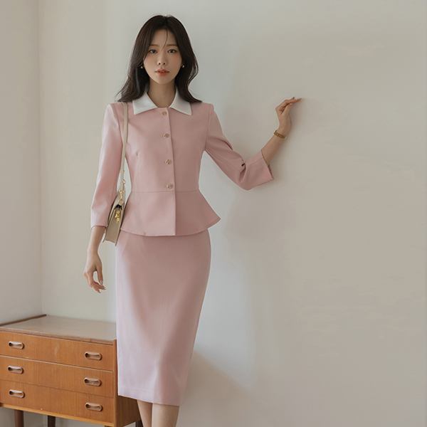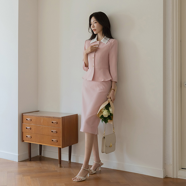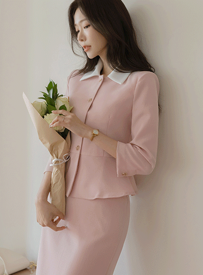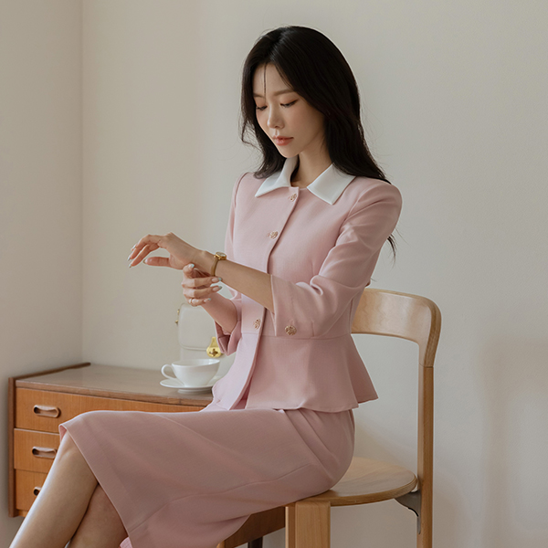 에이블 Color Combination Collar Peplum Set-up Jacket