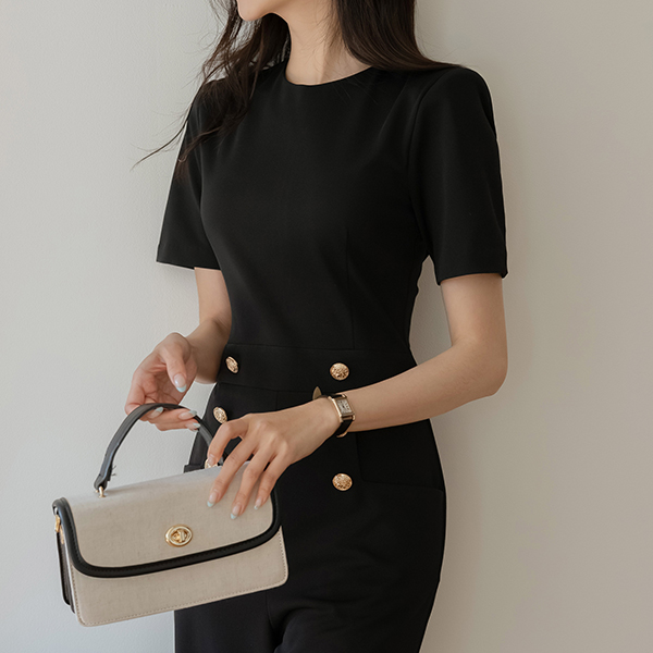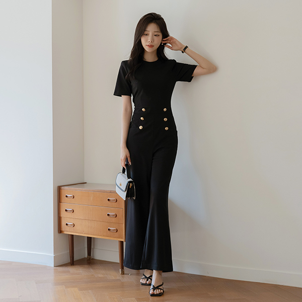 Double Gold Long-legged Short-sleeve Jumpsuit