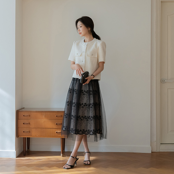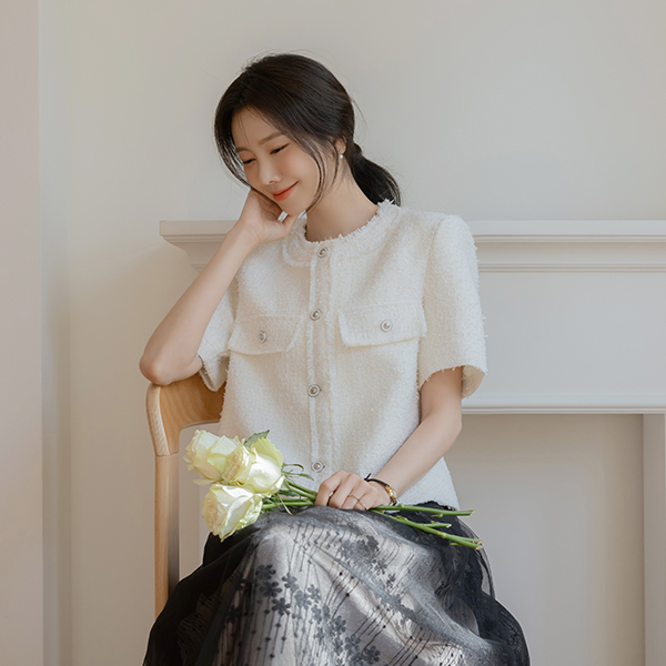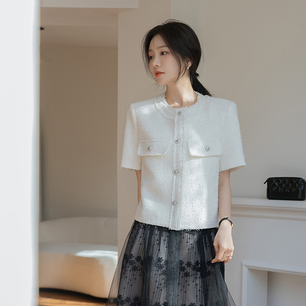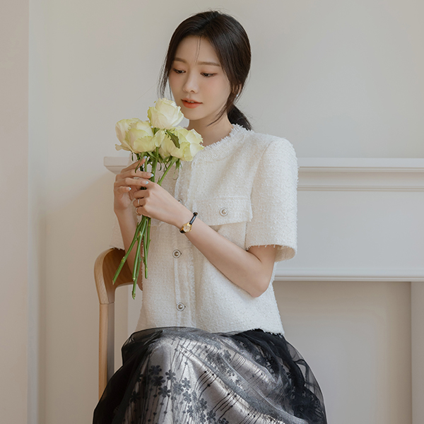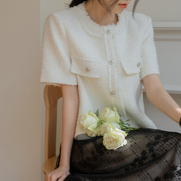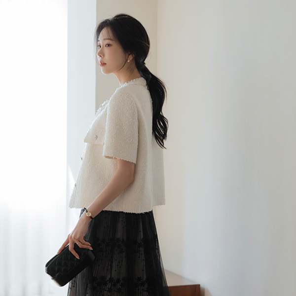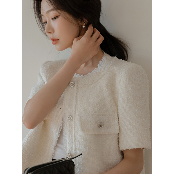 Leeds Tassel Short-sleeve Tweed Jacket