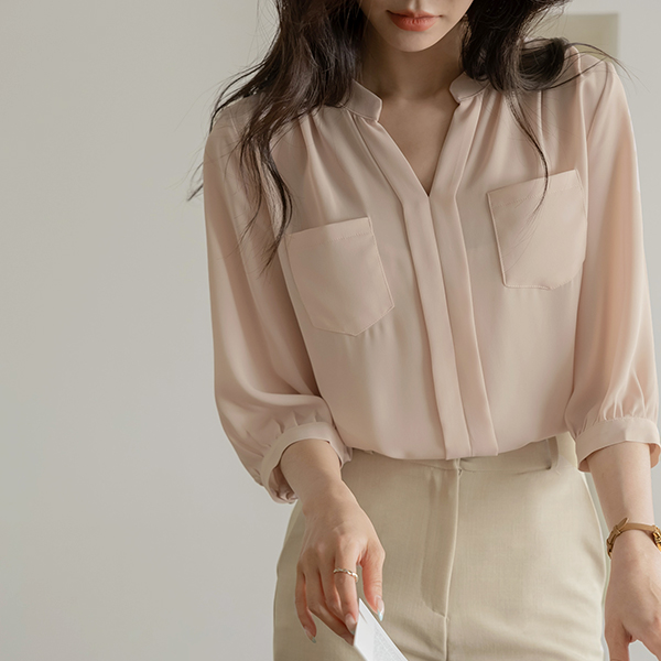 Juicy Two Pocket Three-Quarter Sleeves Blouse
