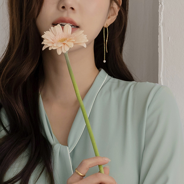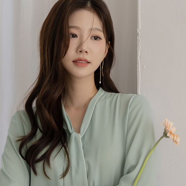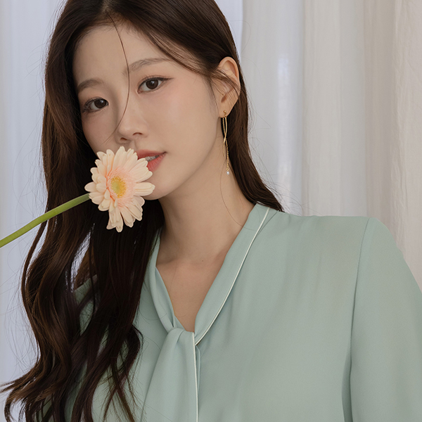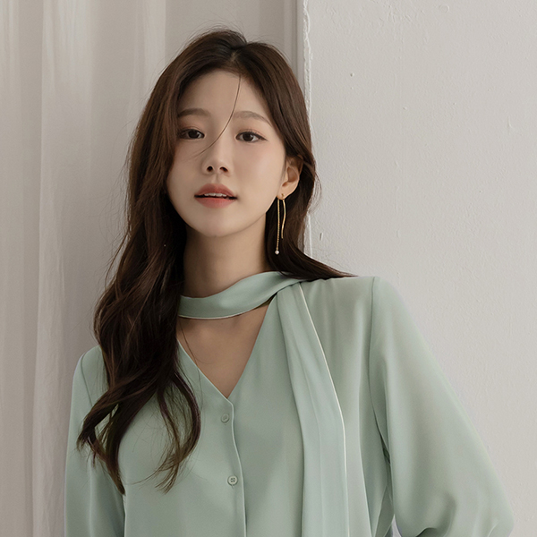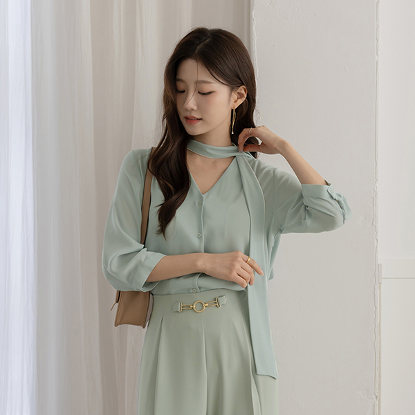 Color Combination Lining Soft Tie Neck Blouse
