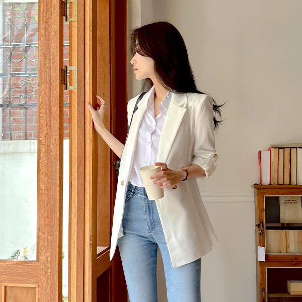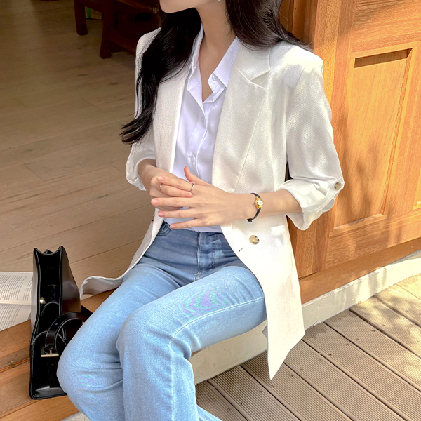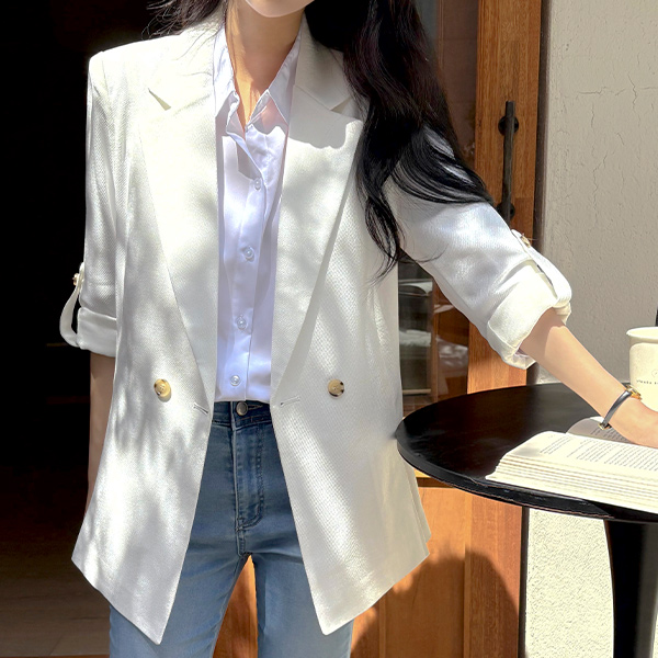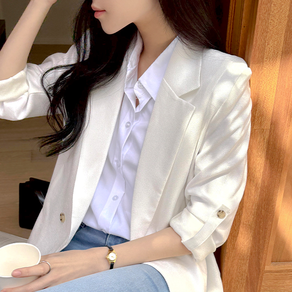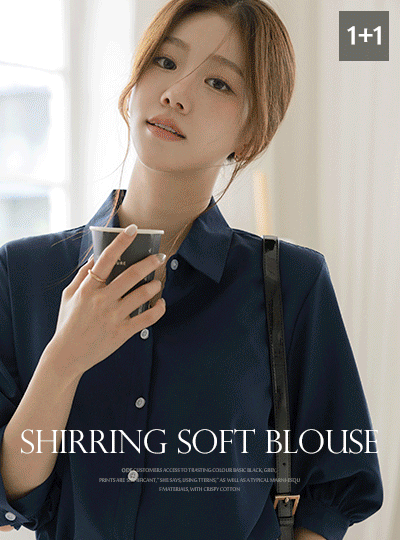 (1+1할인) Shirring Three-Quarter Sleeves Soft Span Blouse