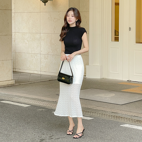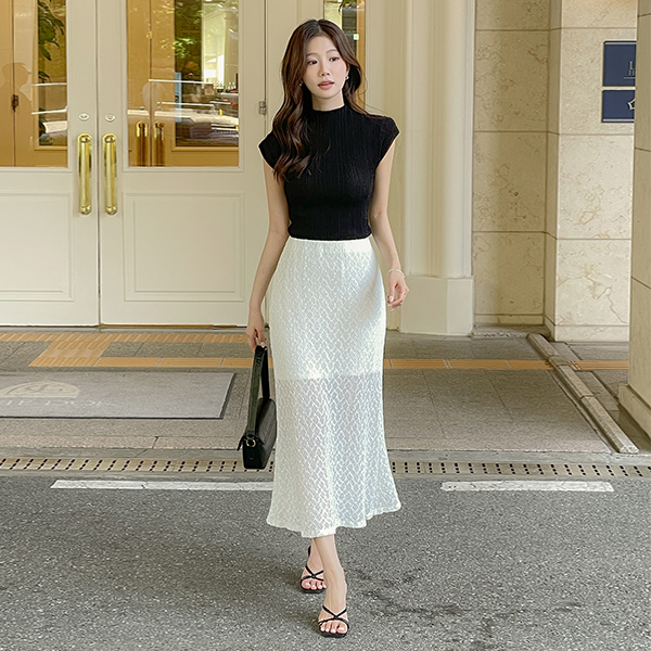 Ensemble Wrinkle 반목넥 Cap-Sleeves Knit