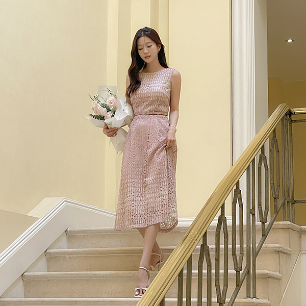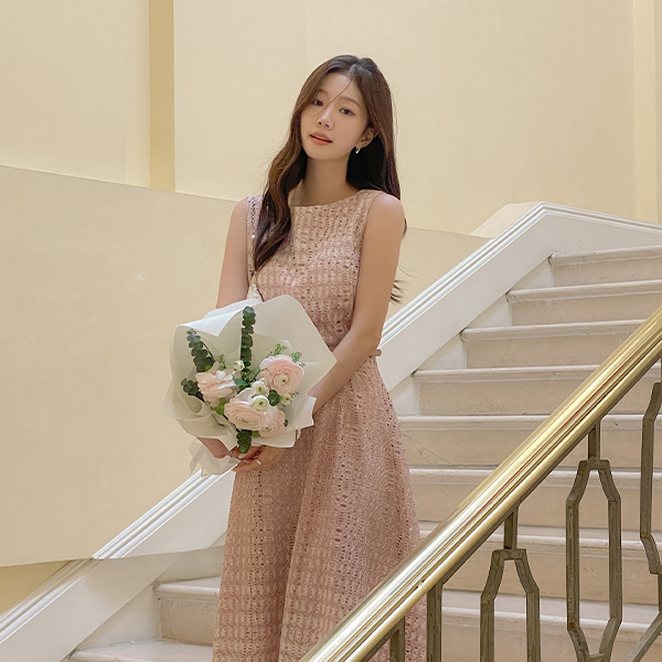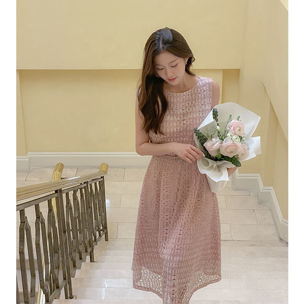 Eco Lace Punching Sleeveless shirts Dress(+Belt)