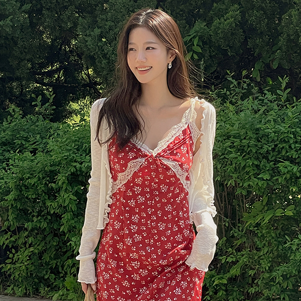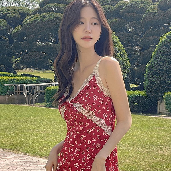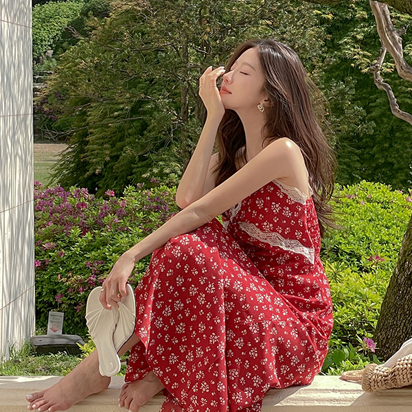 Feminine Floral Lace Back Banding Sleeveless shirts Long Dress