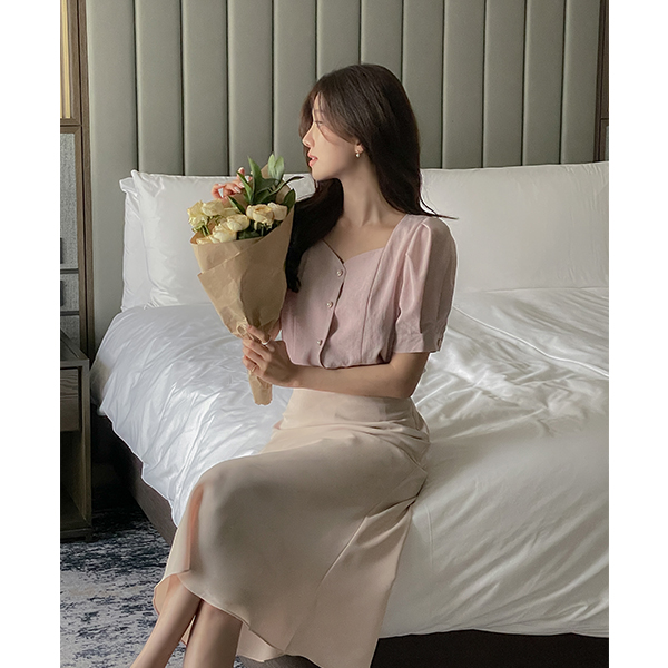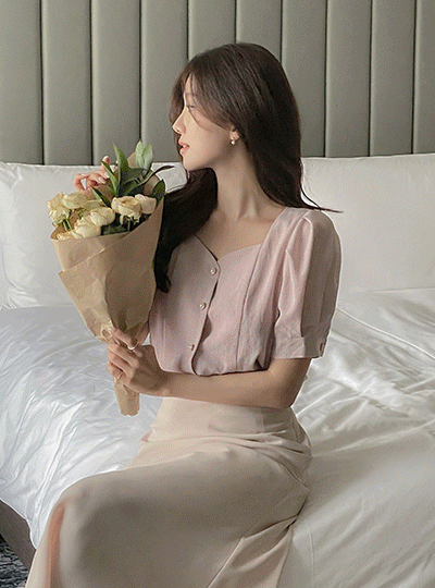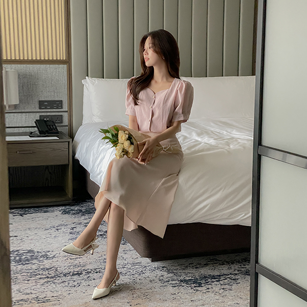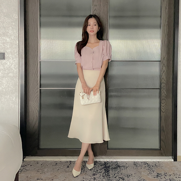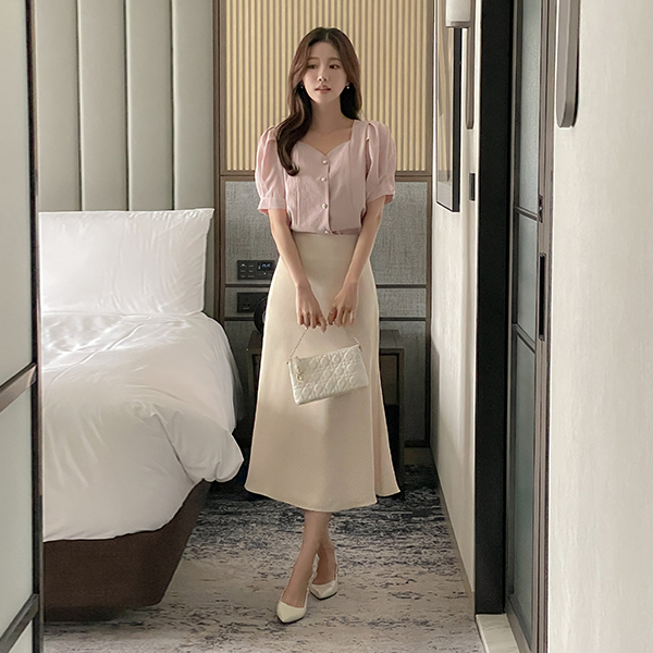Heart Neck Puff Blouse