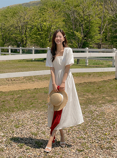 Puff Sleeves Pintuck String Dress