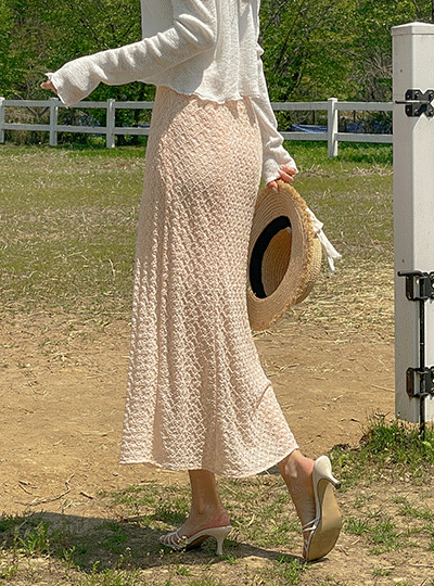 Lace Span Cutting-line Banding Long Skirt