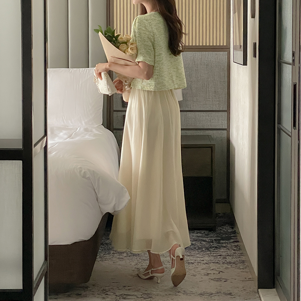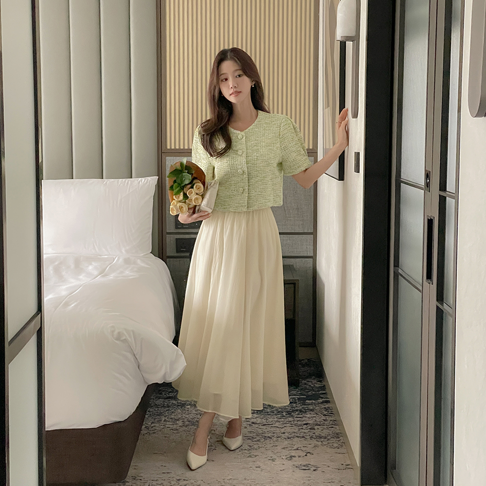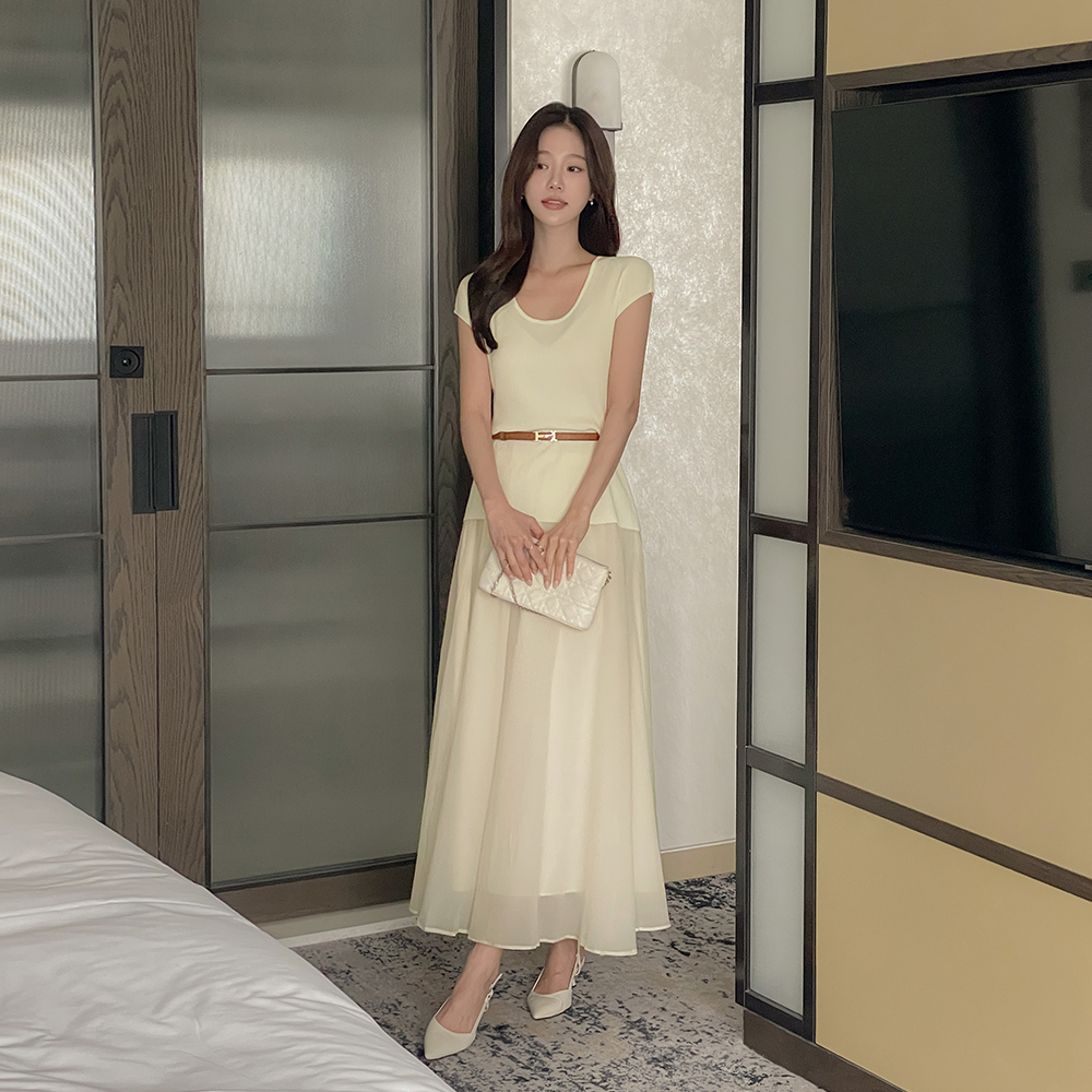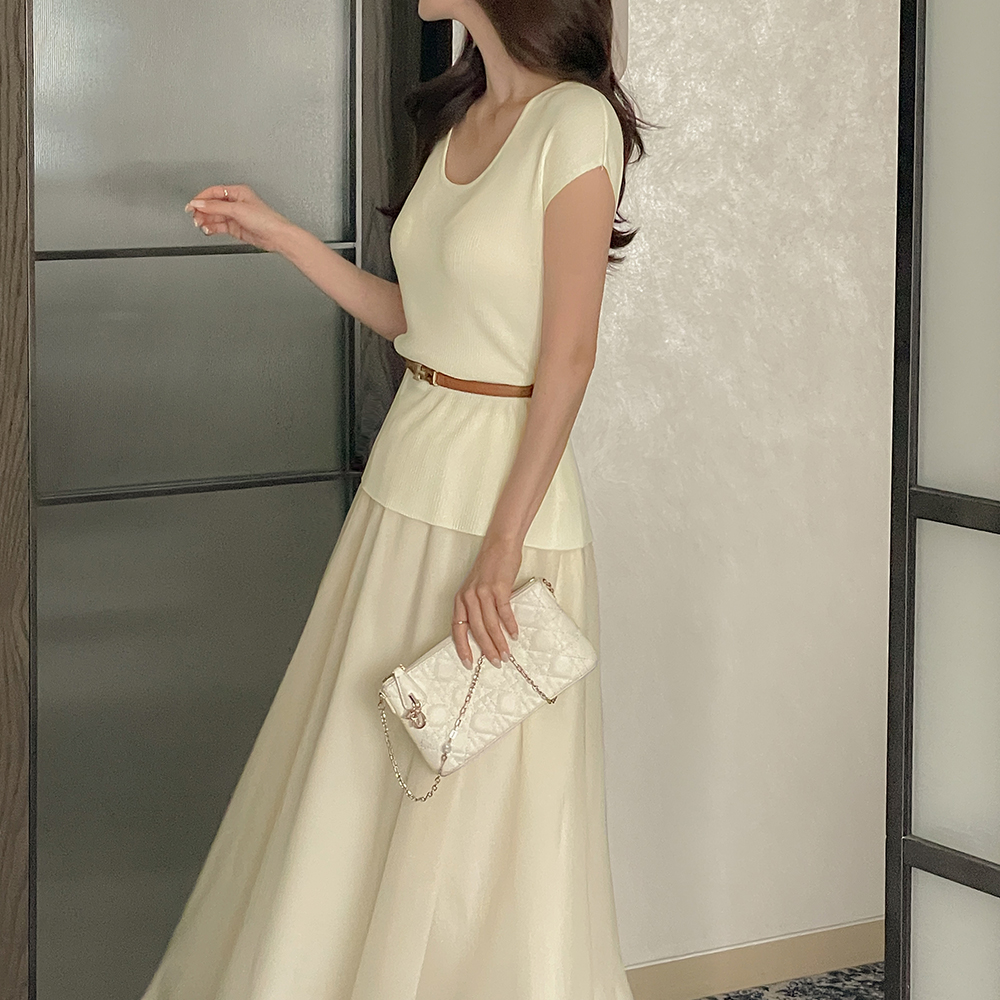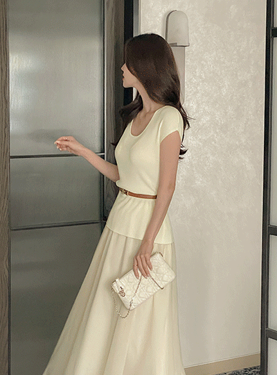 Summer UNeck Cap-Sleeves Corduroy Knit