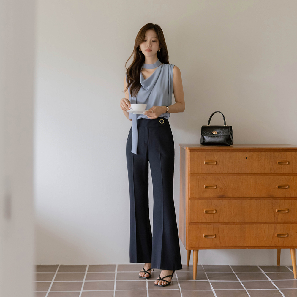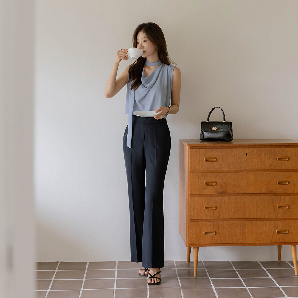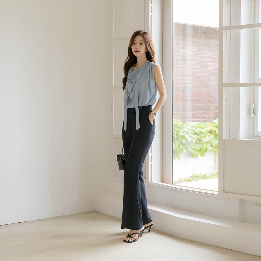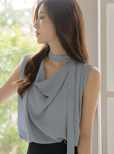 Chloe Cowl Neck Sleeveless shirts Blouse(+Tie)