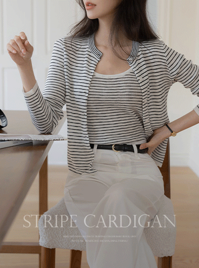 Stripe Corduroy Sleeveless shirts&Cardigan SET