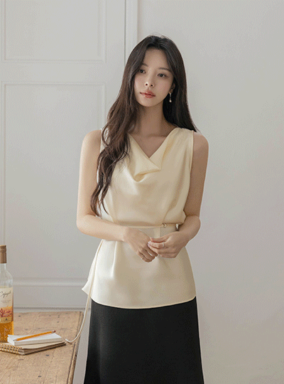 Luxury Cowl Neck Satin Blouse(+Belt)