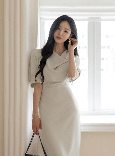 Cowl Neck Back Ribbon H-line Dress