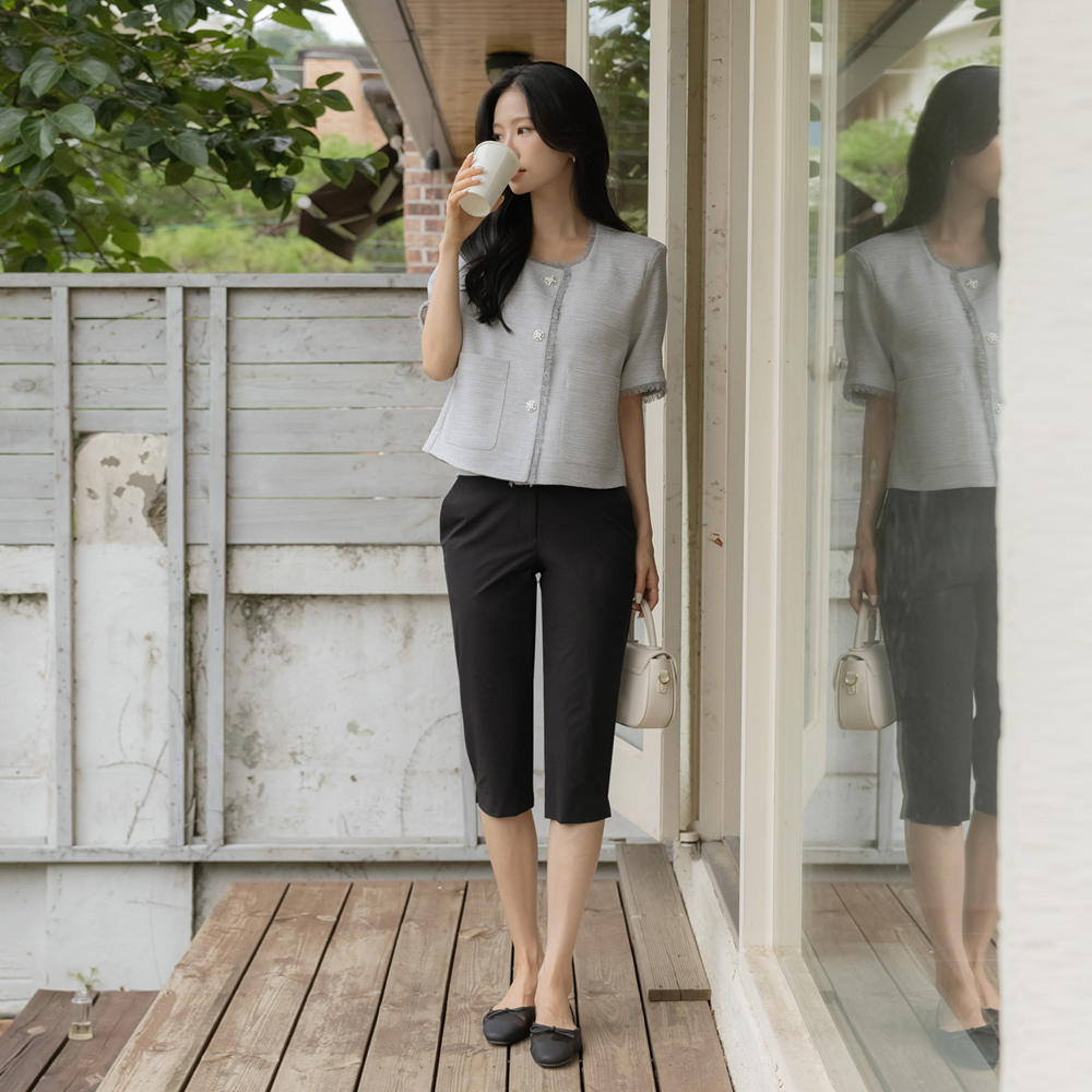 Tassel Tweed Back Banding Short-sleeve Jacket