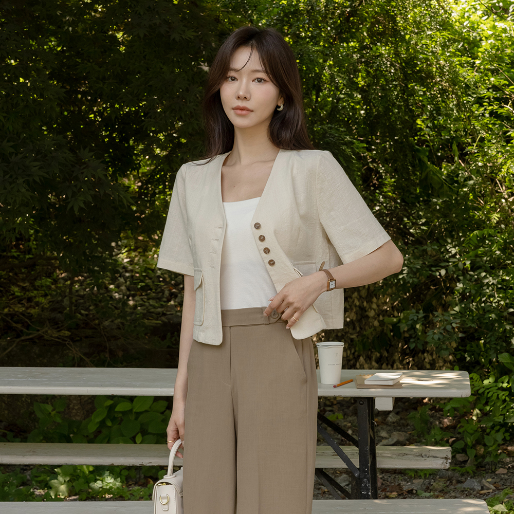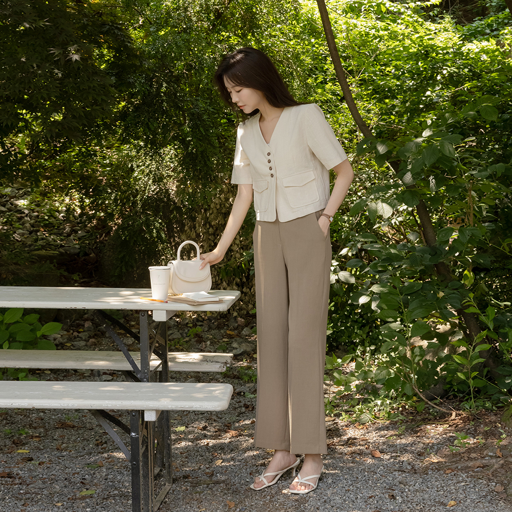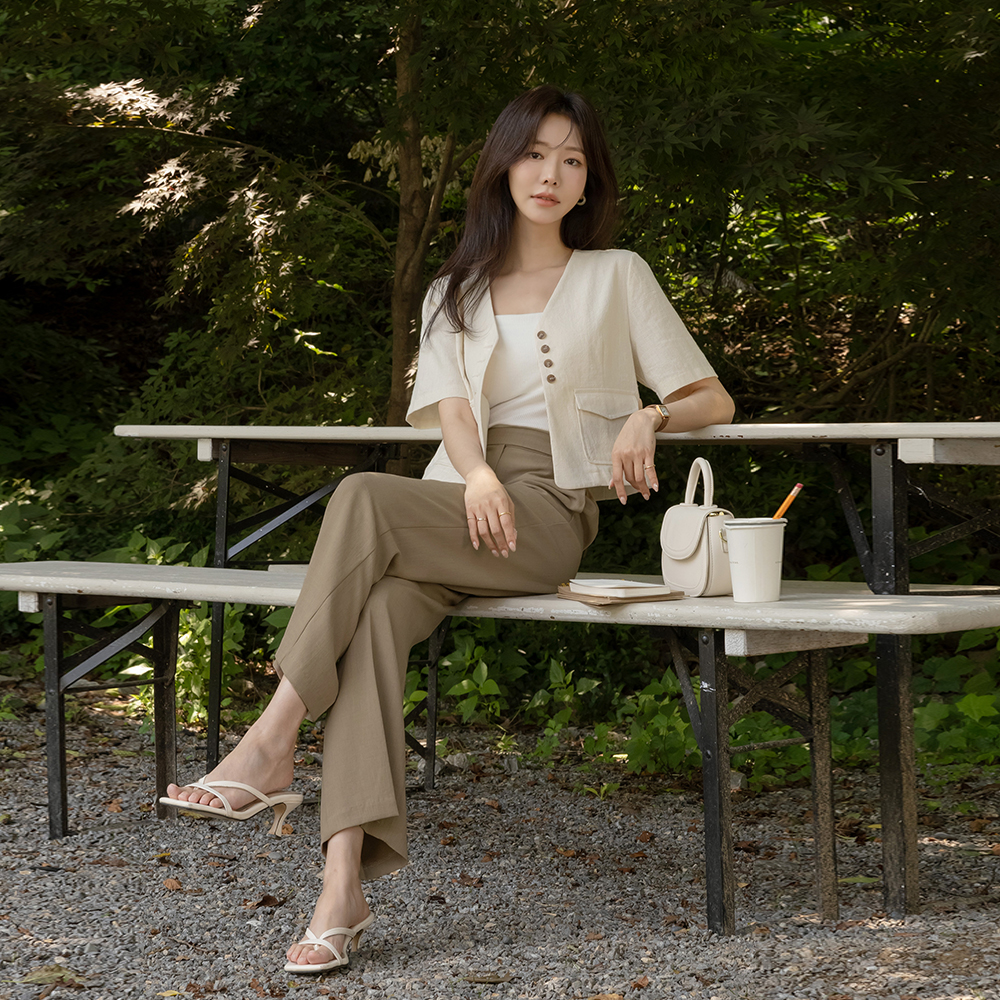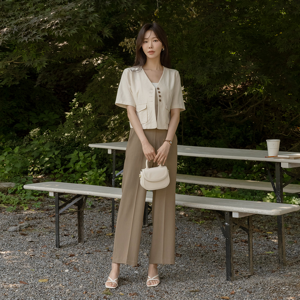 Straight Neckline Cap 내장 Corduroy Sleeveless T-shirt