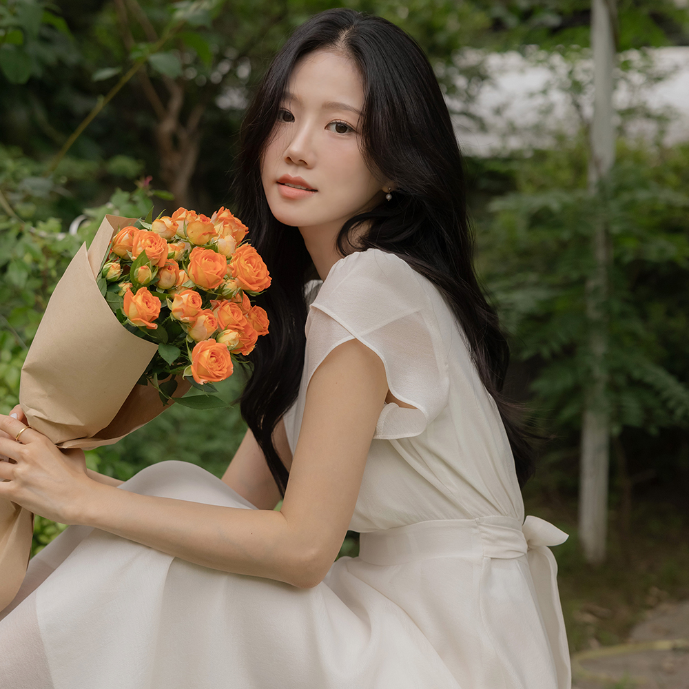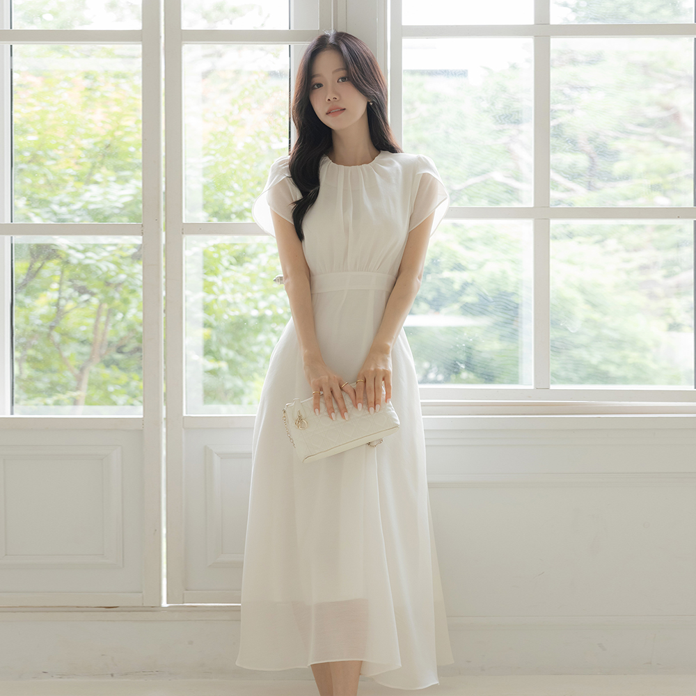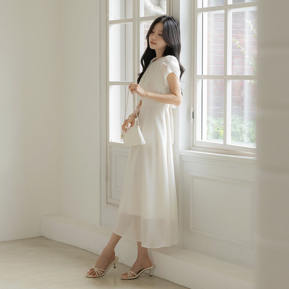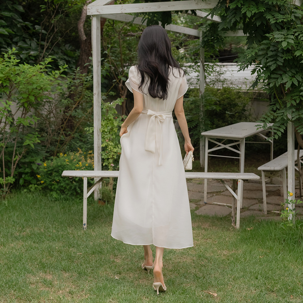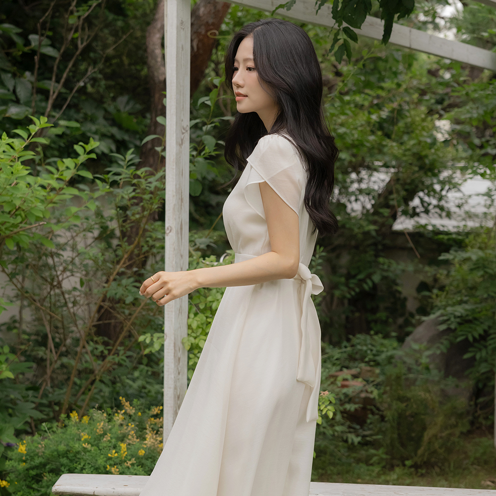 Tulip-Sleeves Soft Back Ribbon Dress