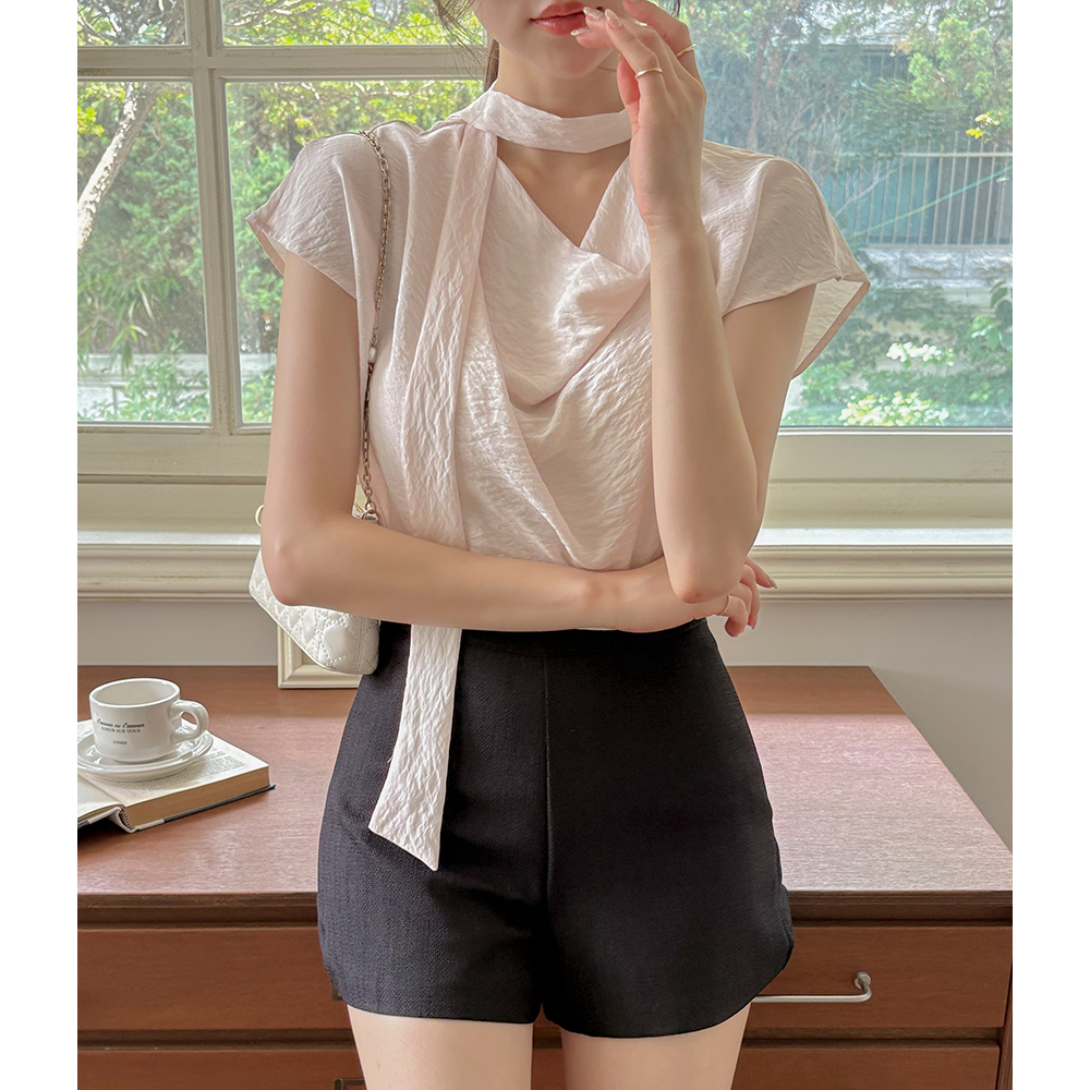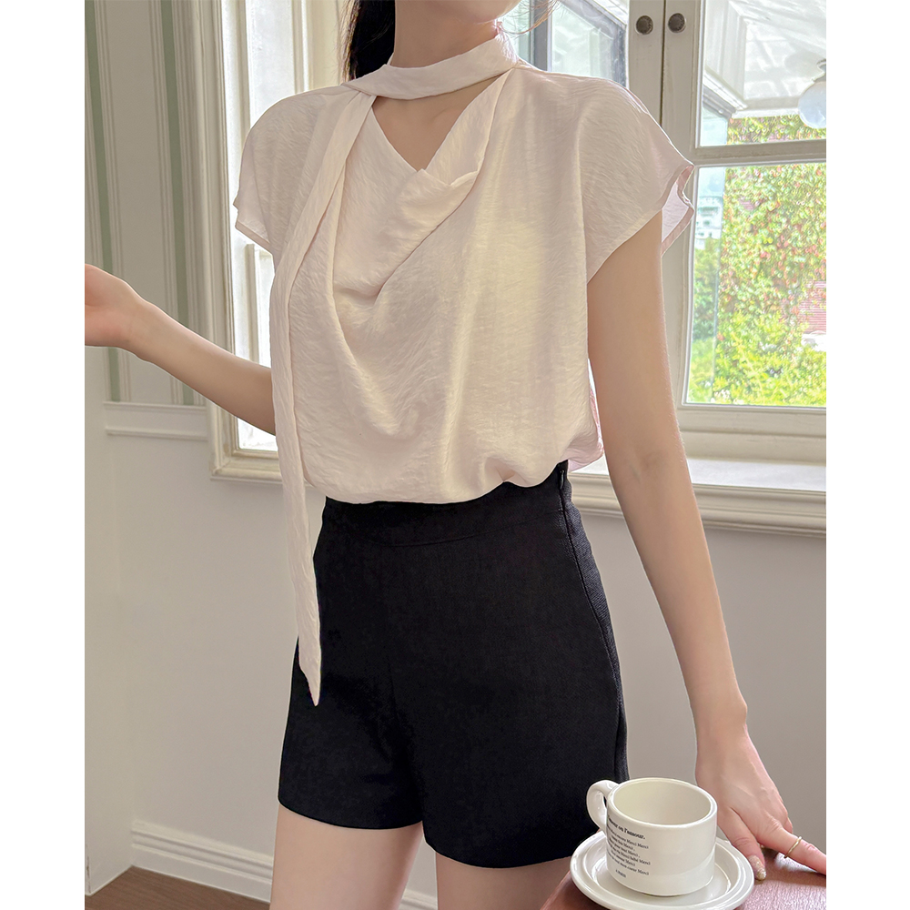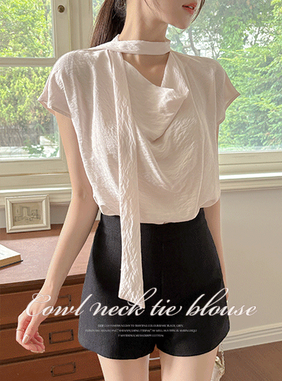 Soft slender Cowl Neck Tie Blouse