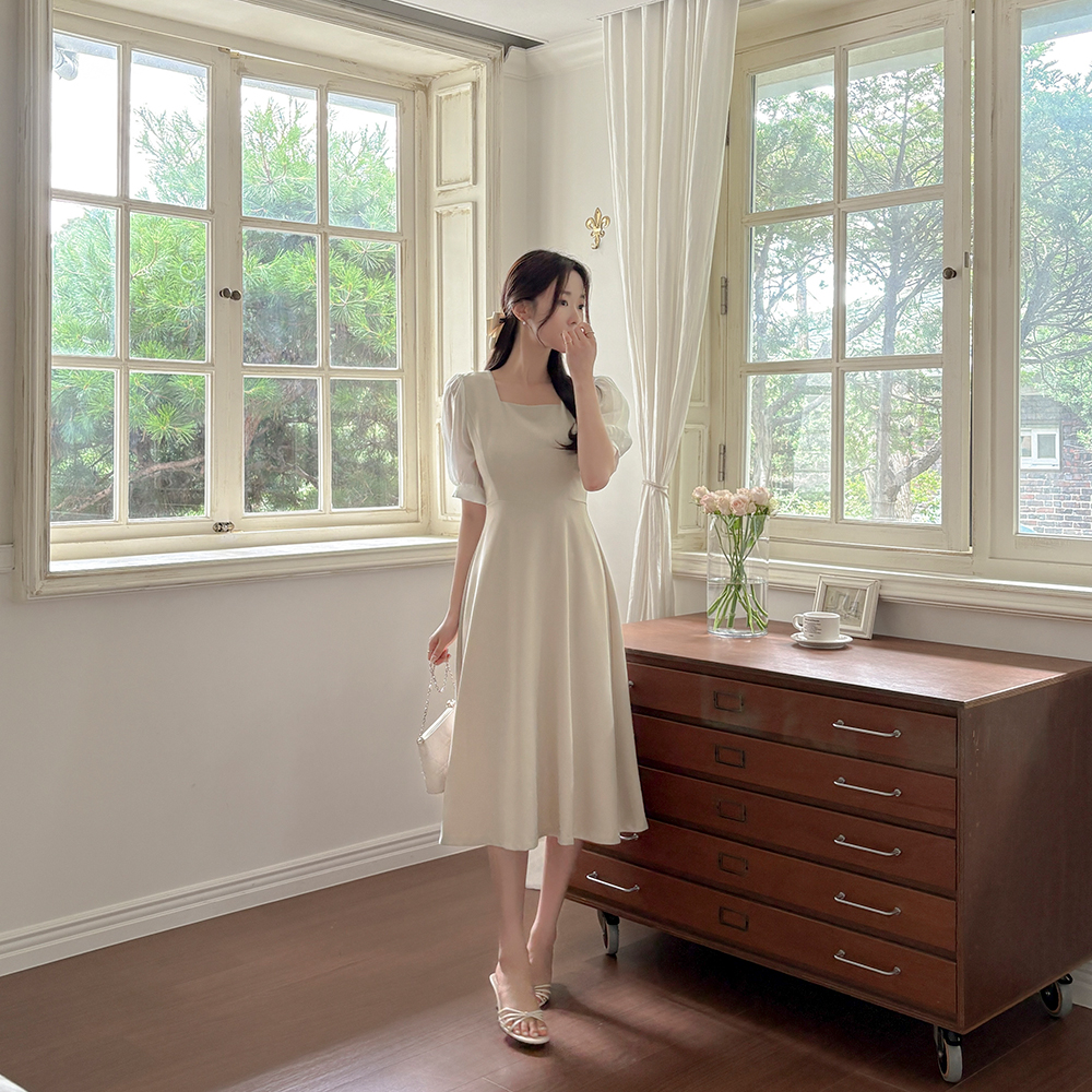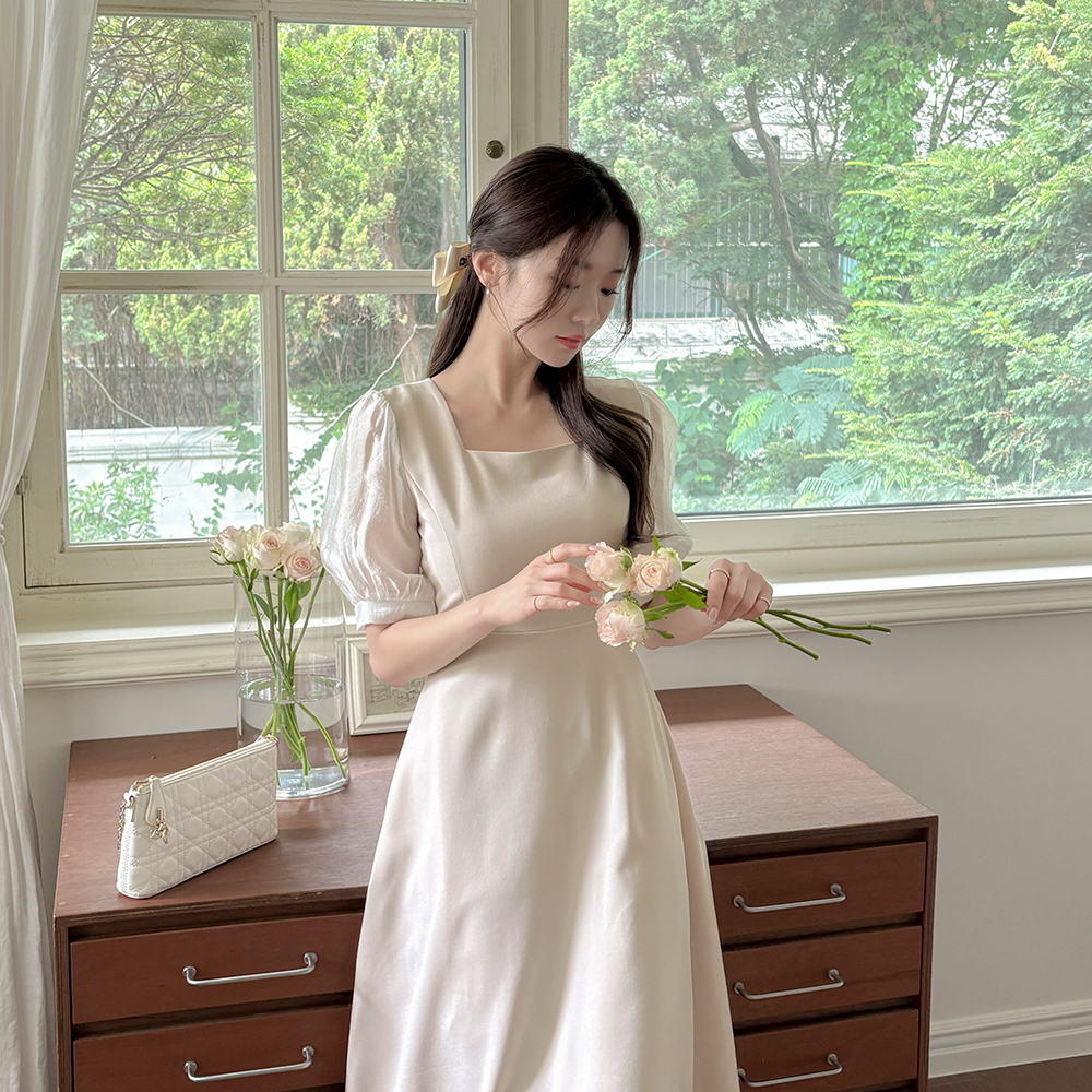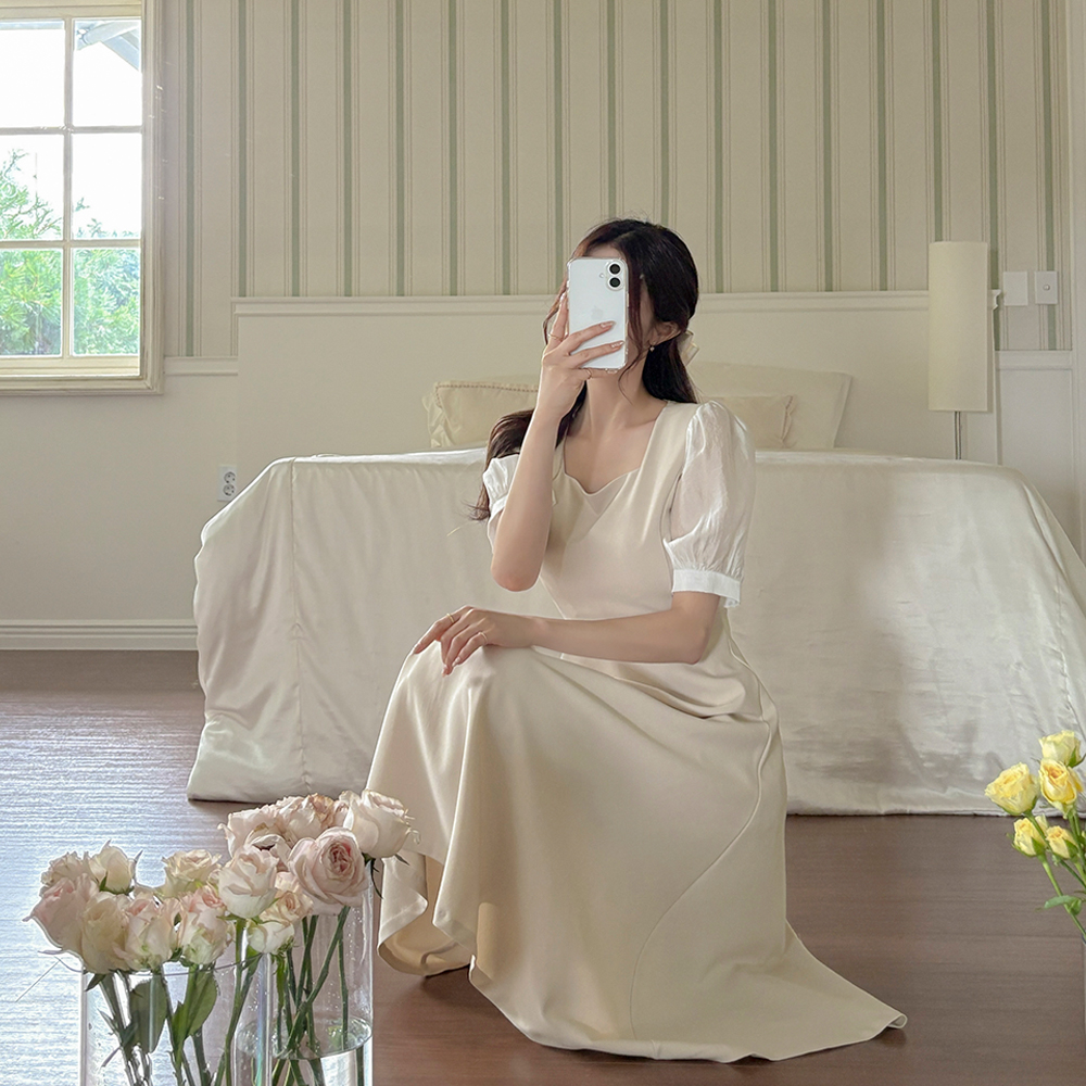 Color Combination Sleeves A-line Dress