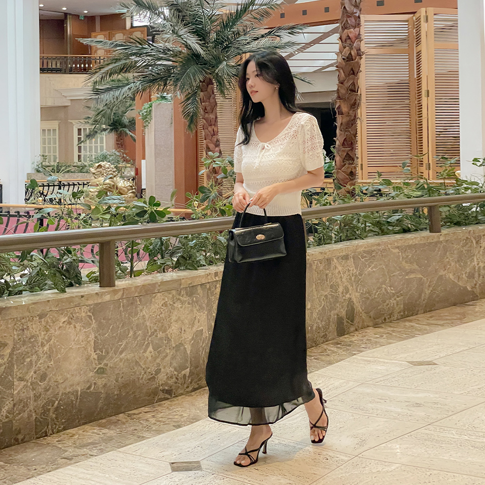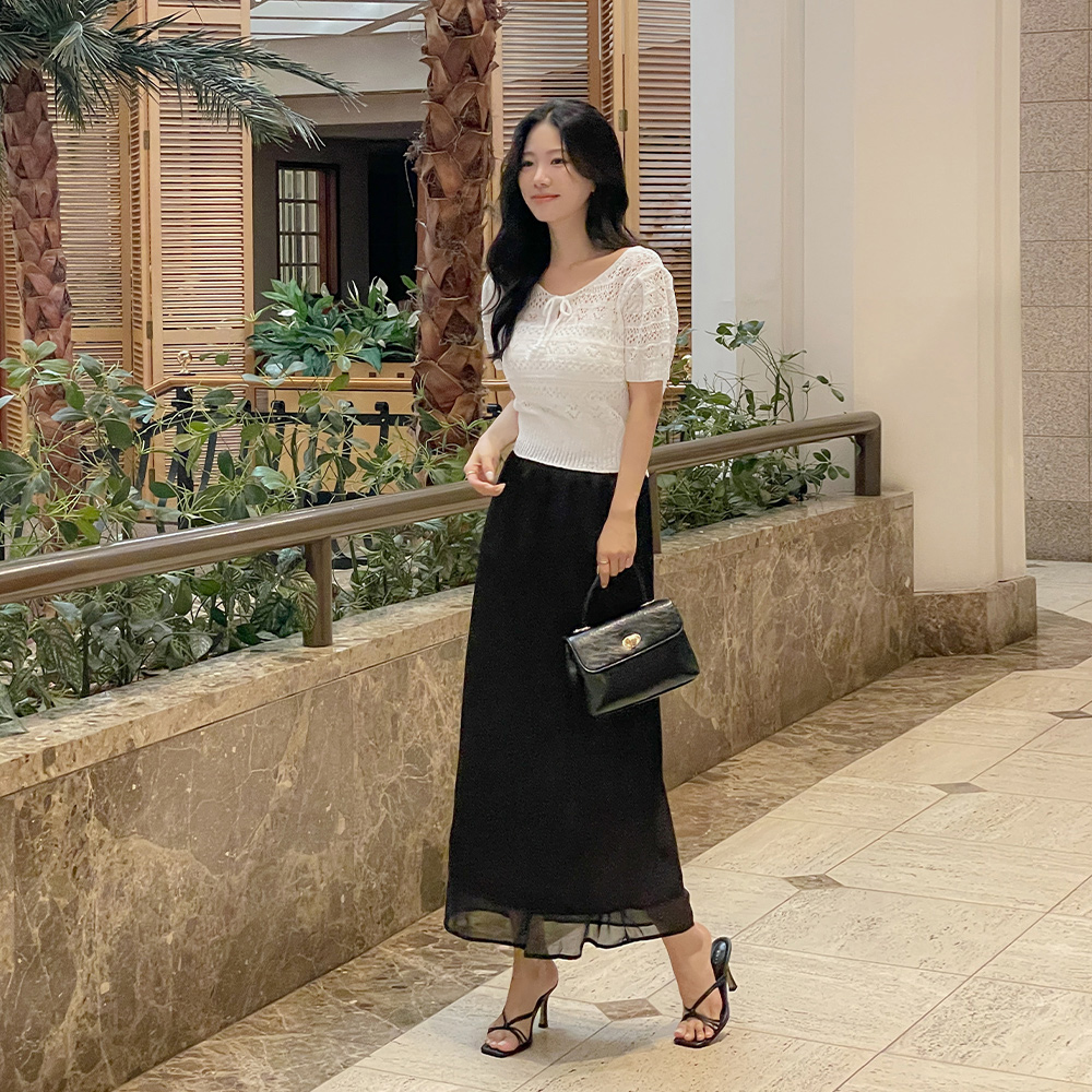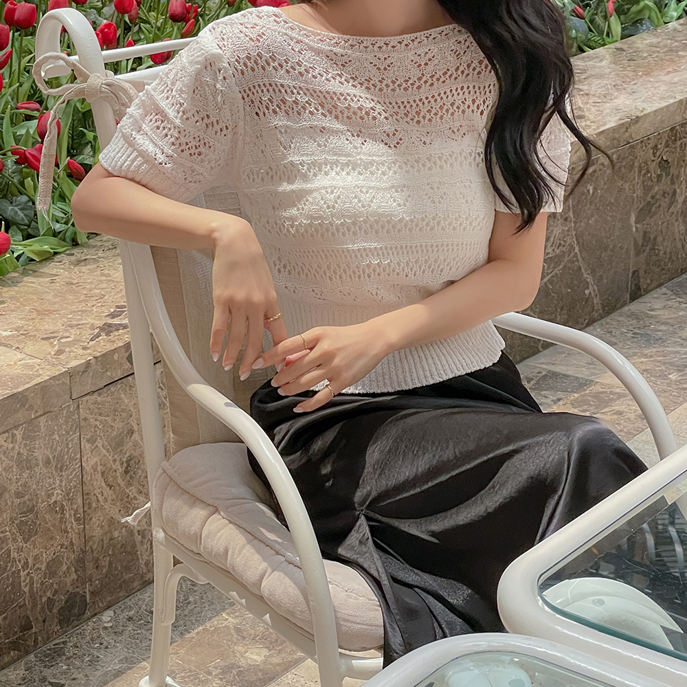 Two-way Ribbon Diamond Punching Short-sleeve Knit
