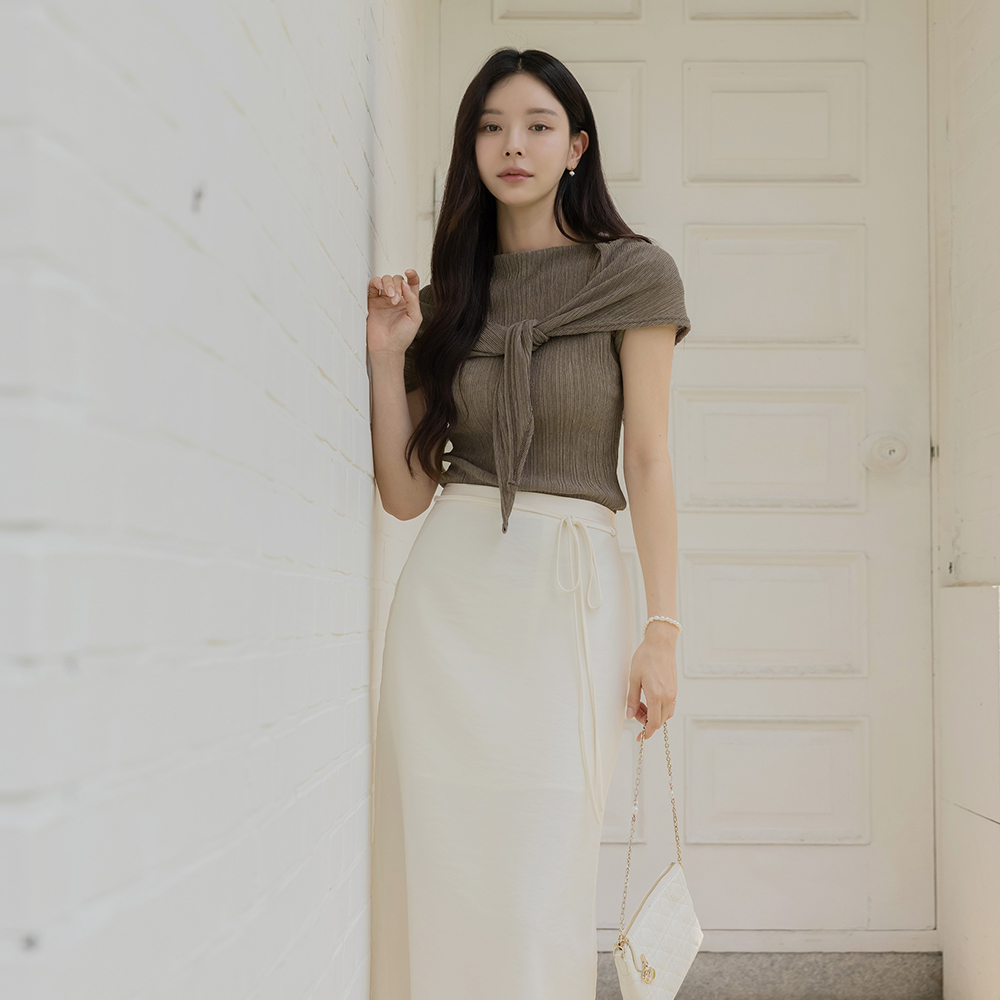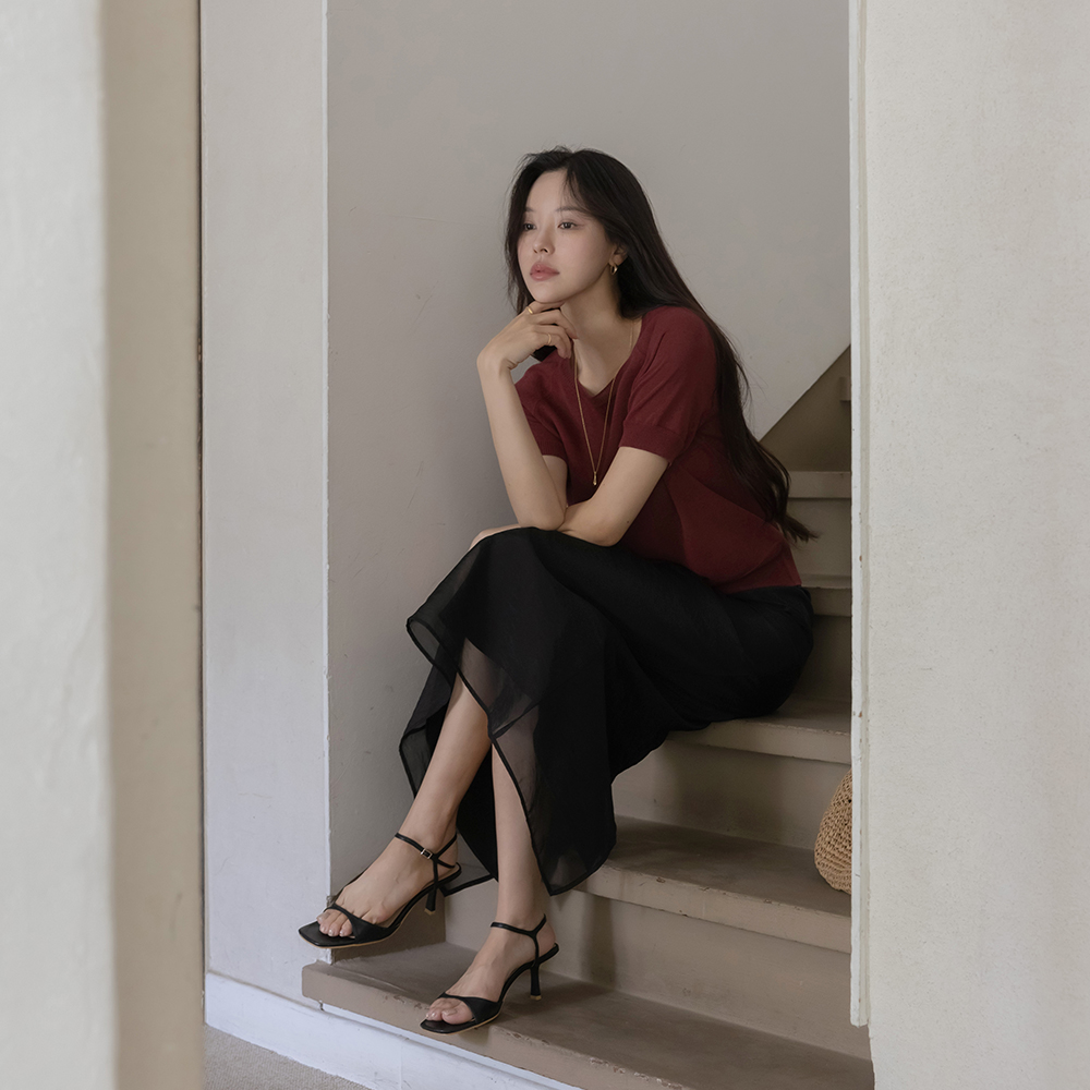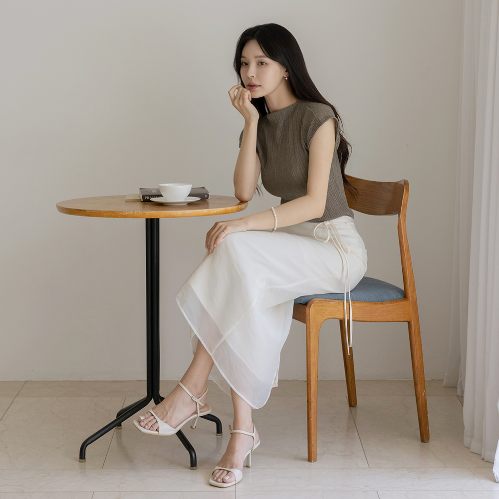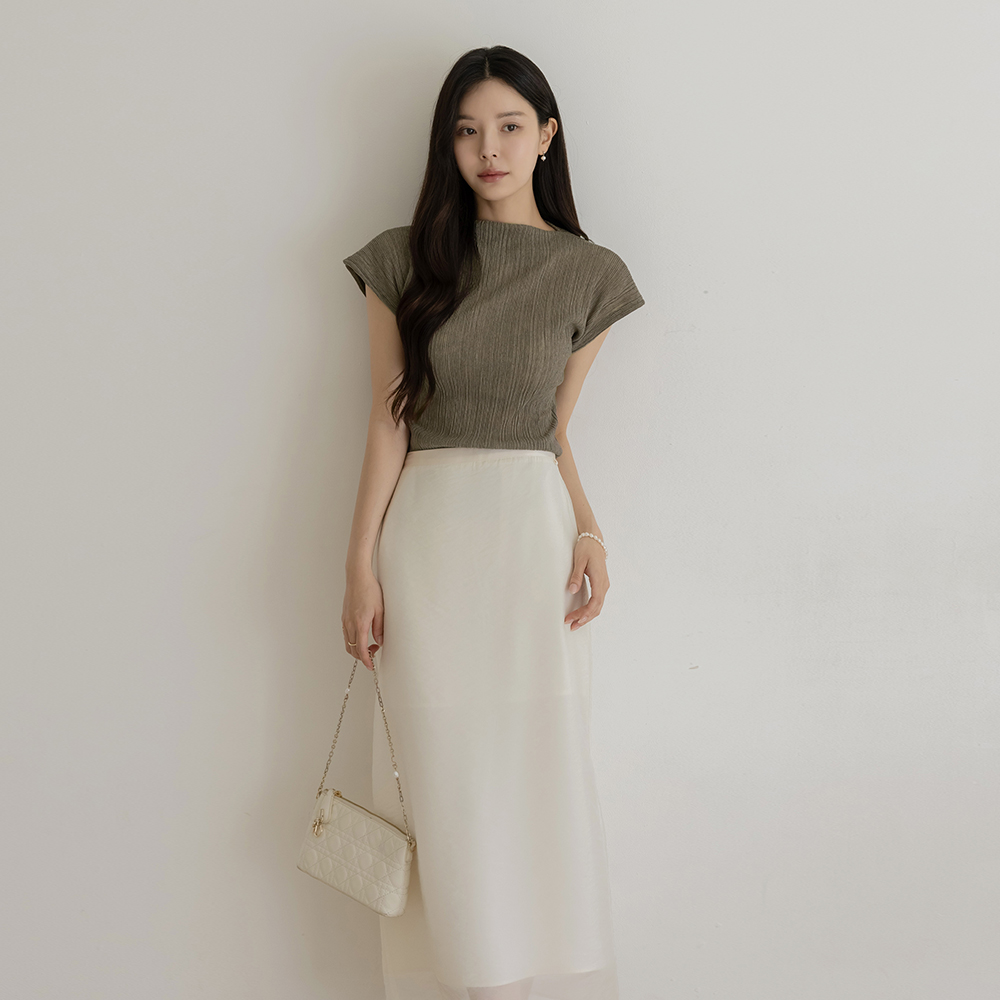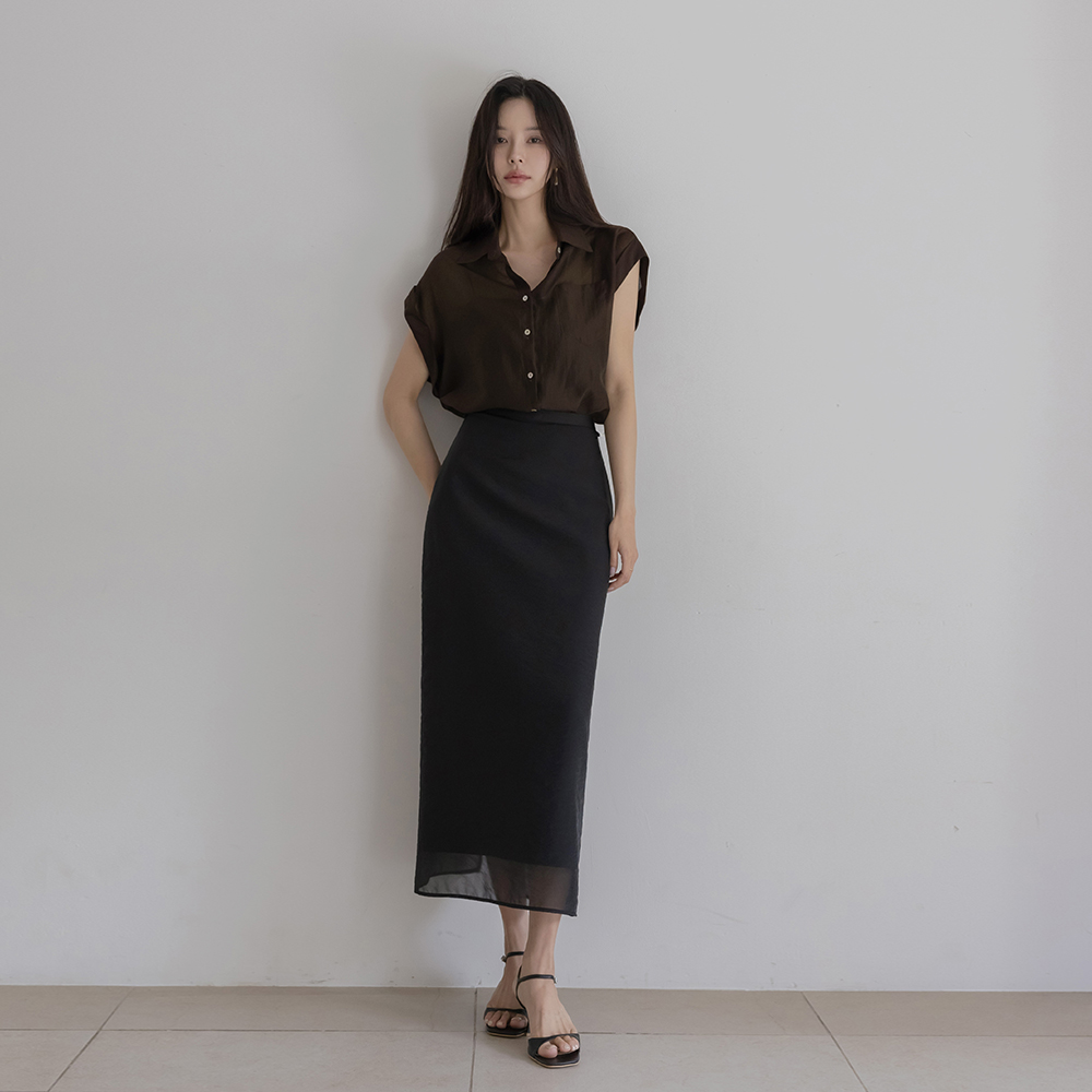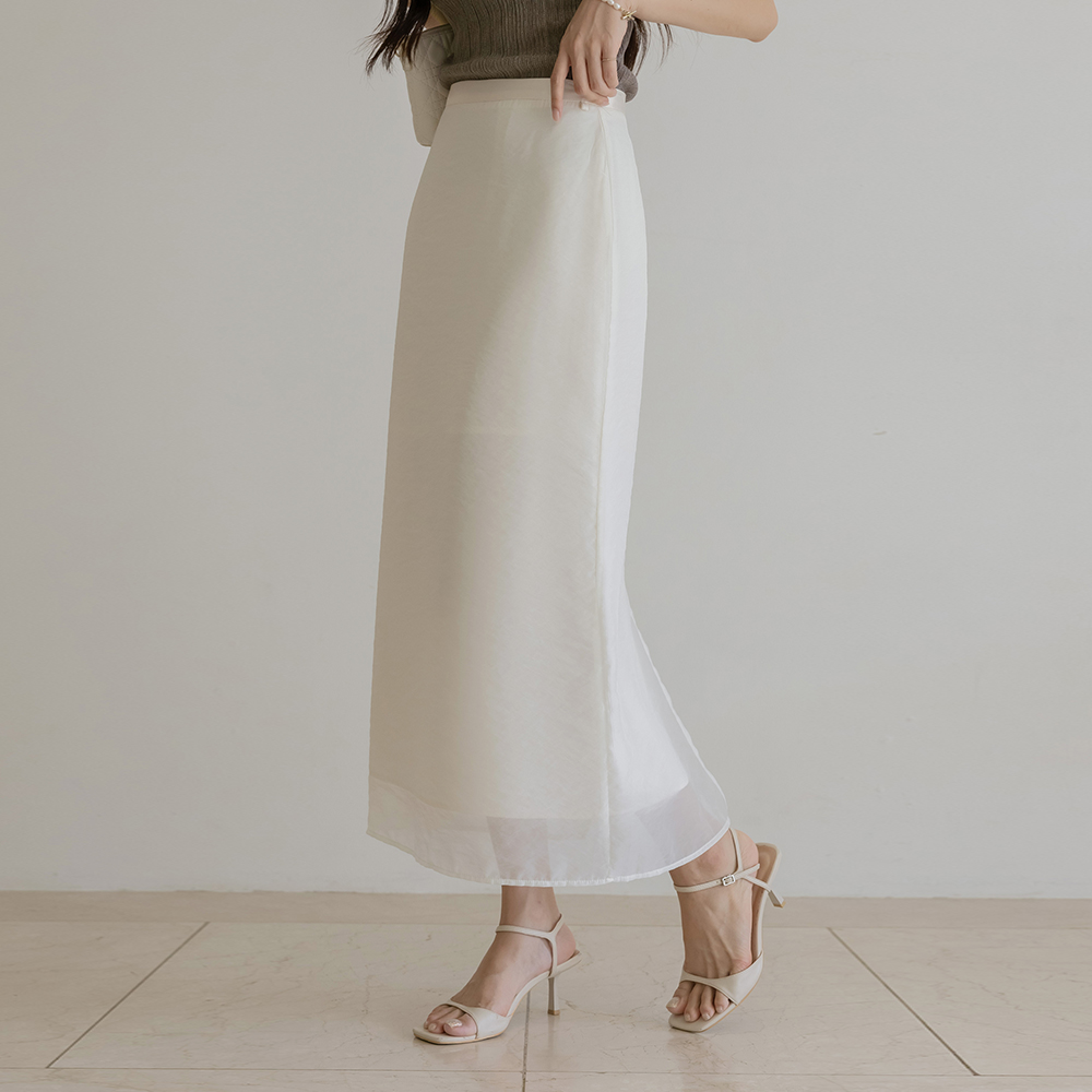 BB See-through Color Combination H-line Long Skirt(+Belt)