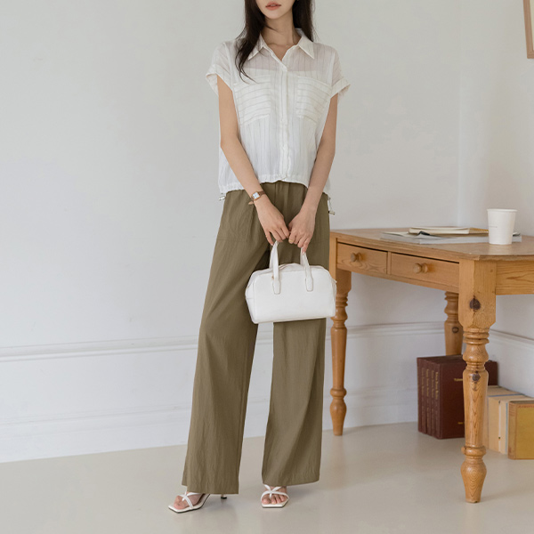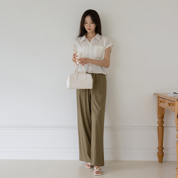 Straight Neckline Cap 내장 Corduroy Sleeveless T-shirt