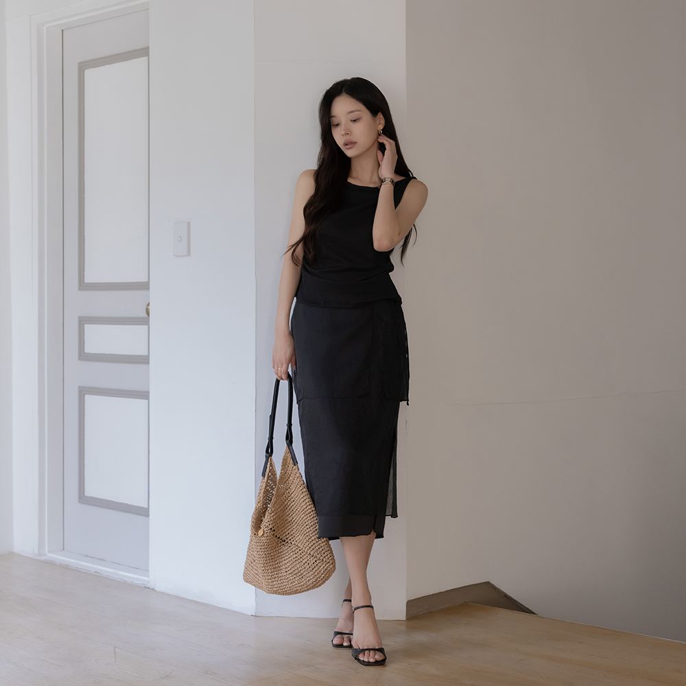 Muse Shirring Twist Sleeveless shirts T-shirt