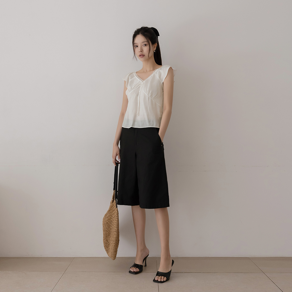 Romantic Lace Ribbon Cap-Sleeves Blouse