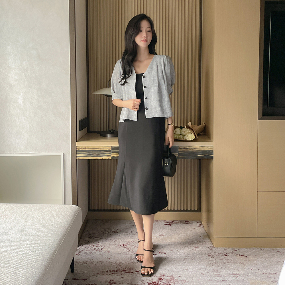 Straight Neckline Cap 내장 Corduroy Sleeveless T-shirt