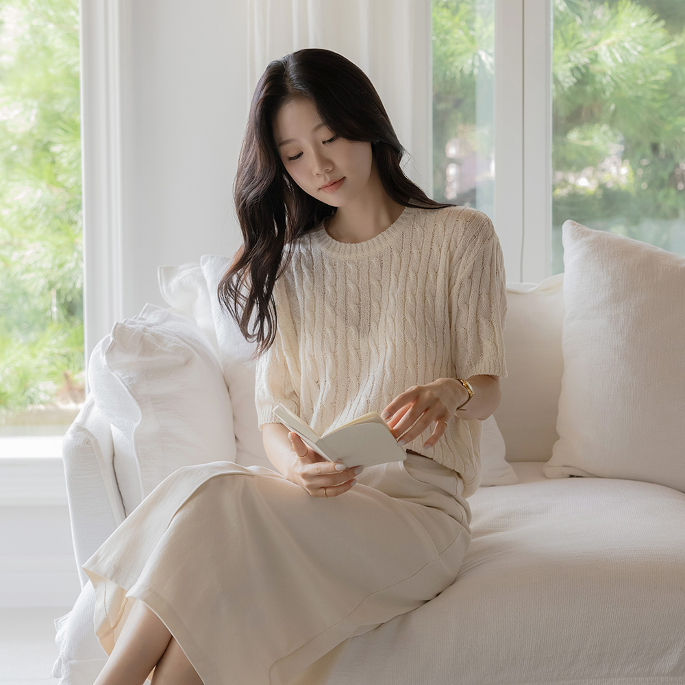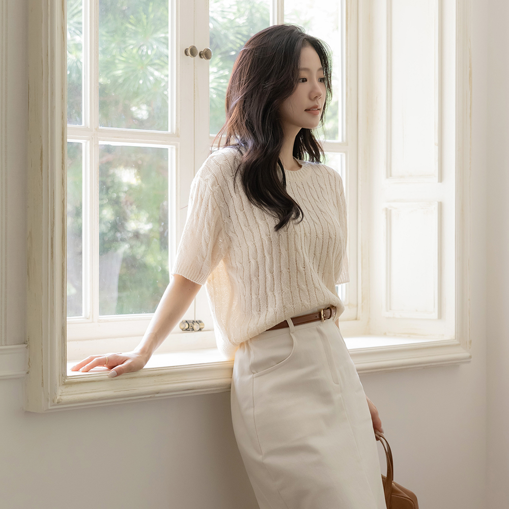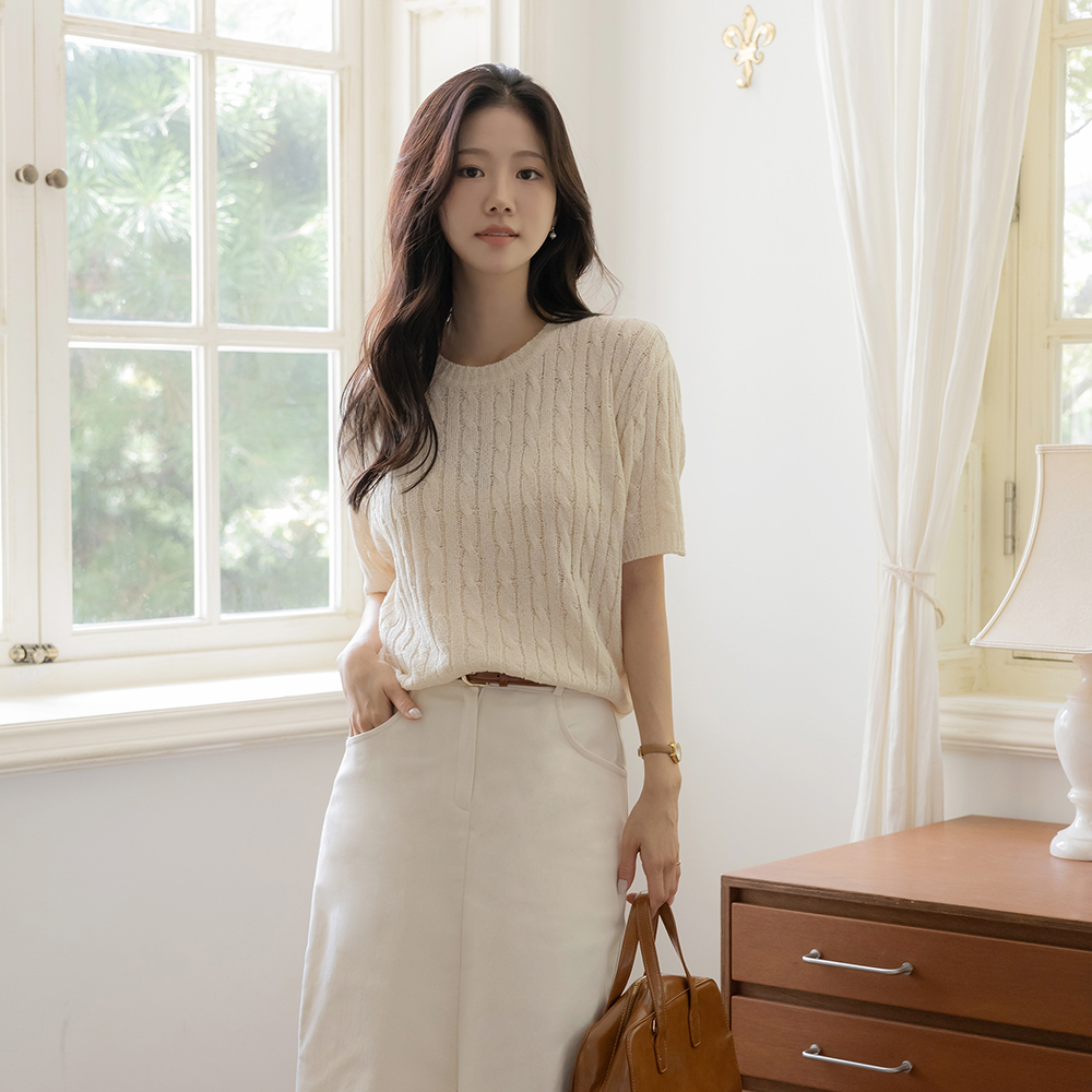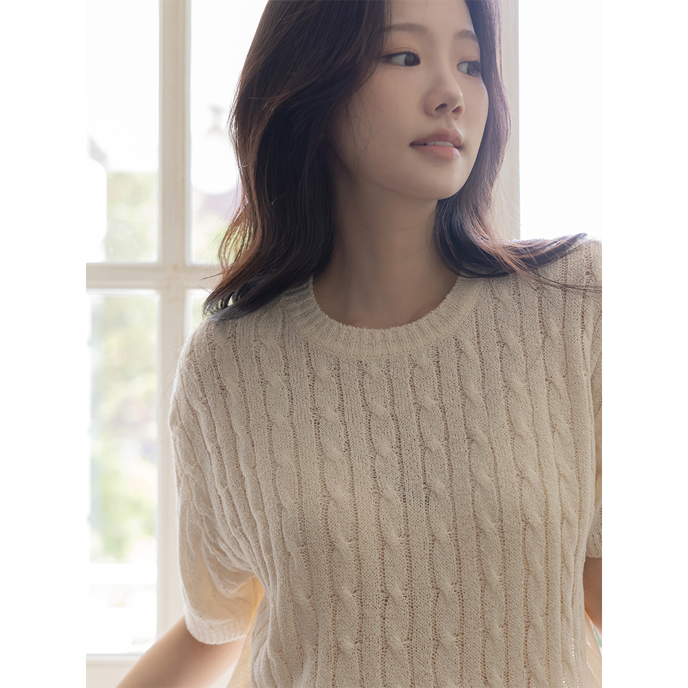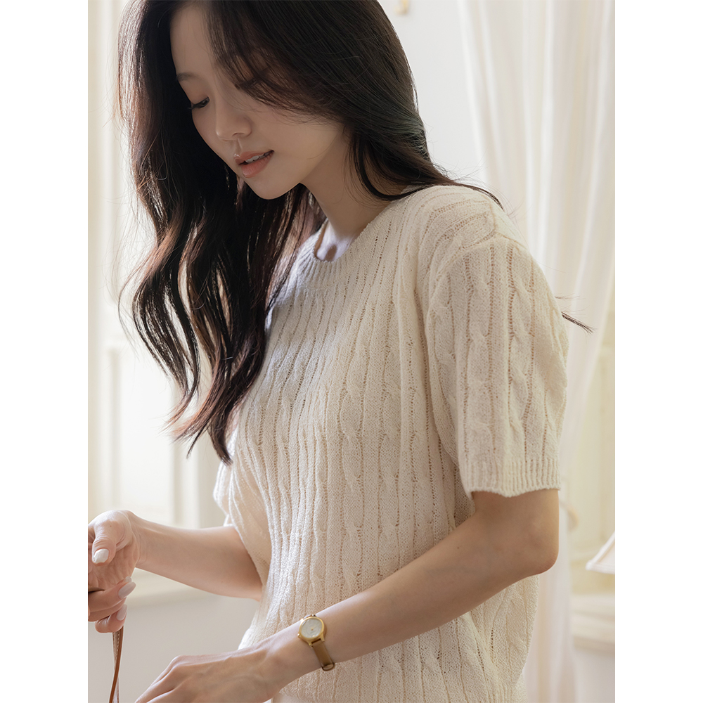 Pastel Raund neck Twiddle Short-sleeve Knit