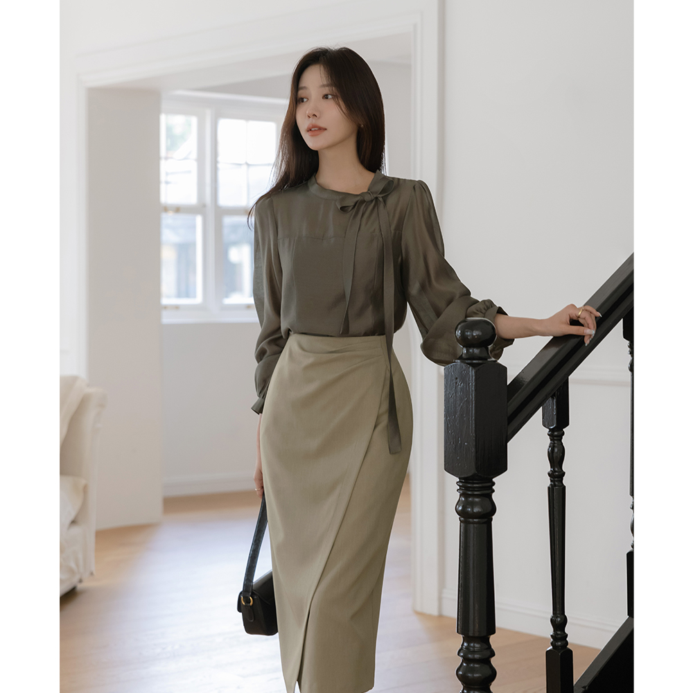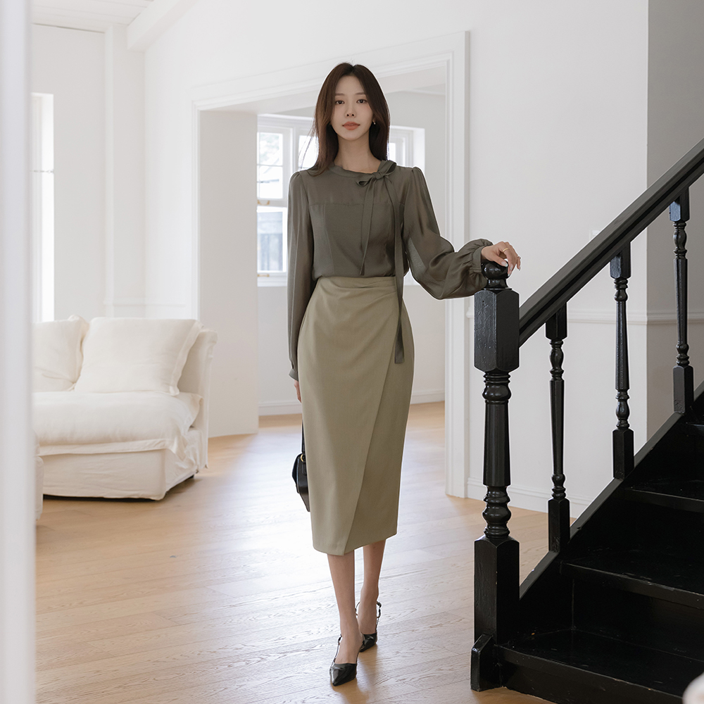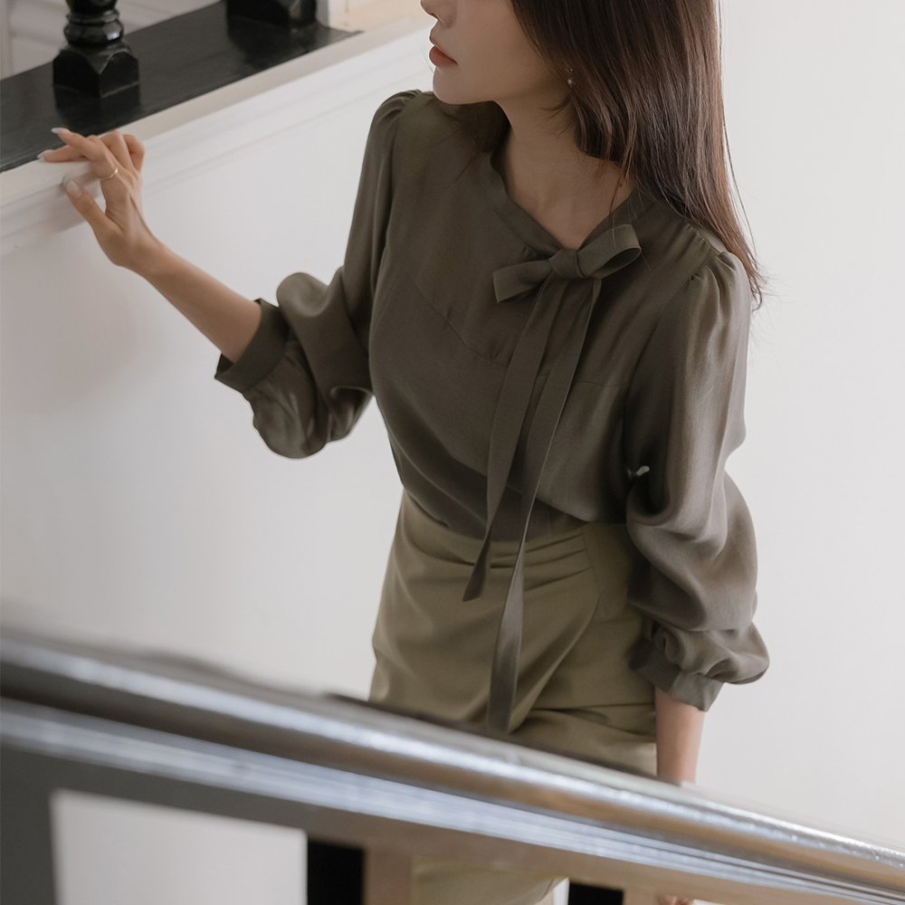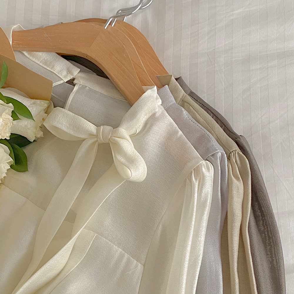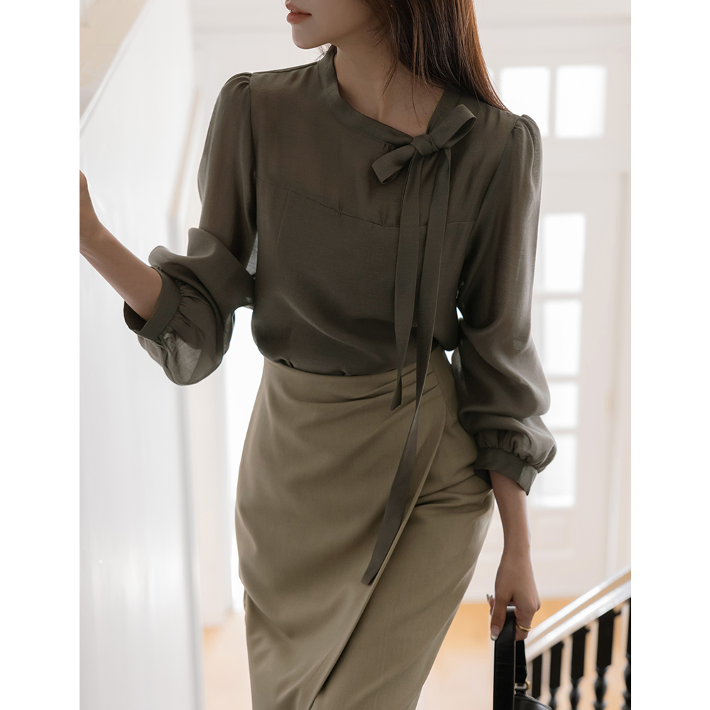 Romantic Ribbon neckline See-through Long-sleeve Blouse