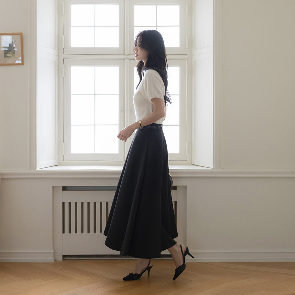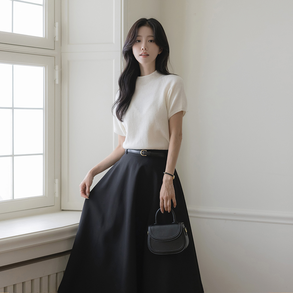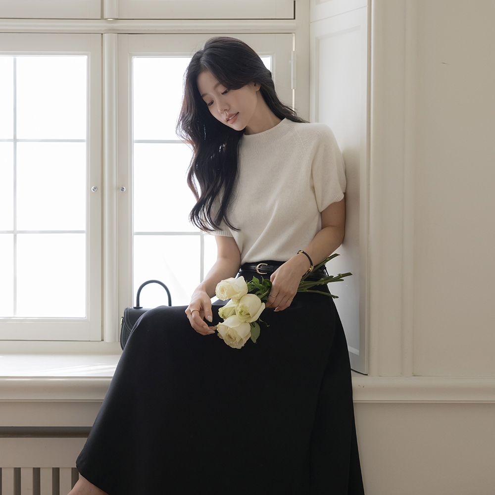 Half-Highneck Whole Garment Wool Short-sleeve Knit