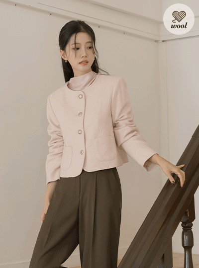 Rosy Raund neck Wool Tweed Jacket