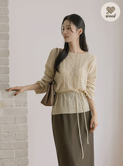 Boat Neck Twiddle Wool Knit(+Belt)