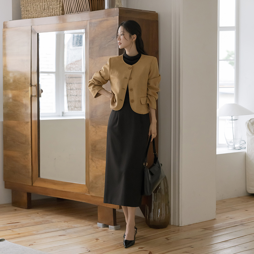 French Raund neck Suede Jacket