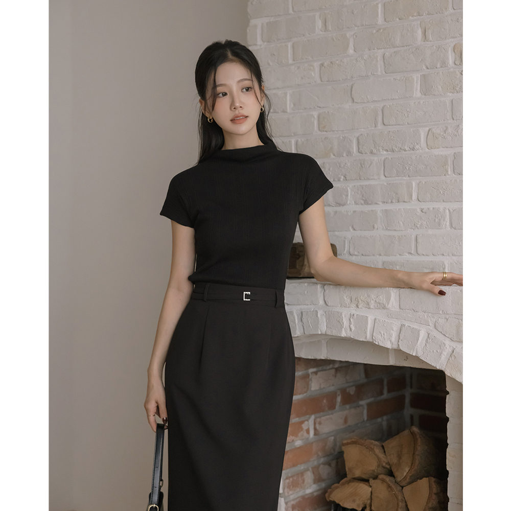Peeling Half-Highneck Crop Cap-Sleeves T-shirt