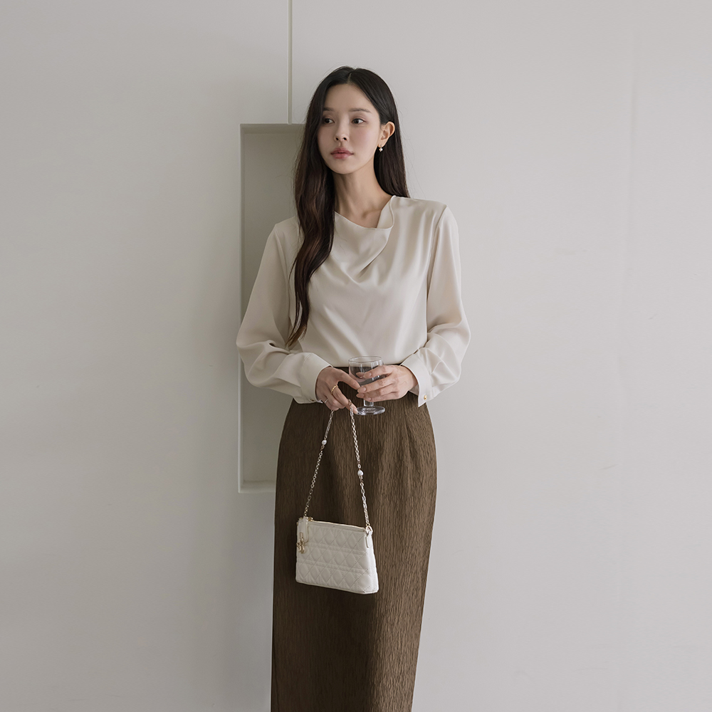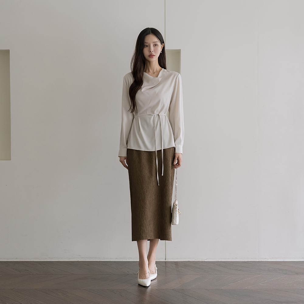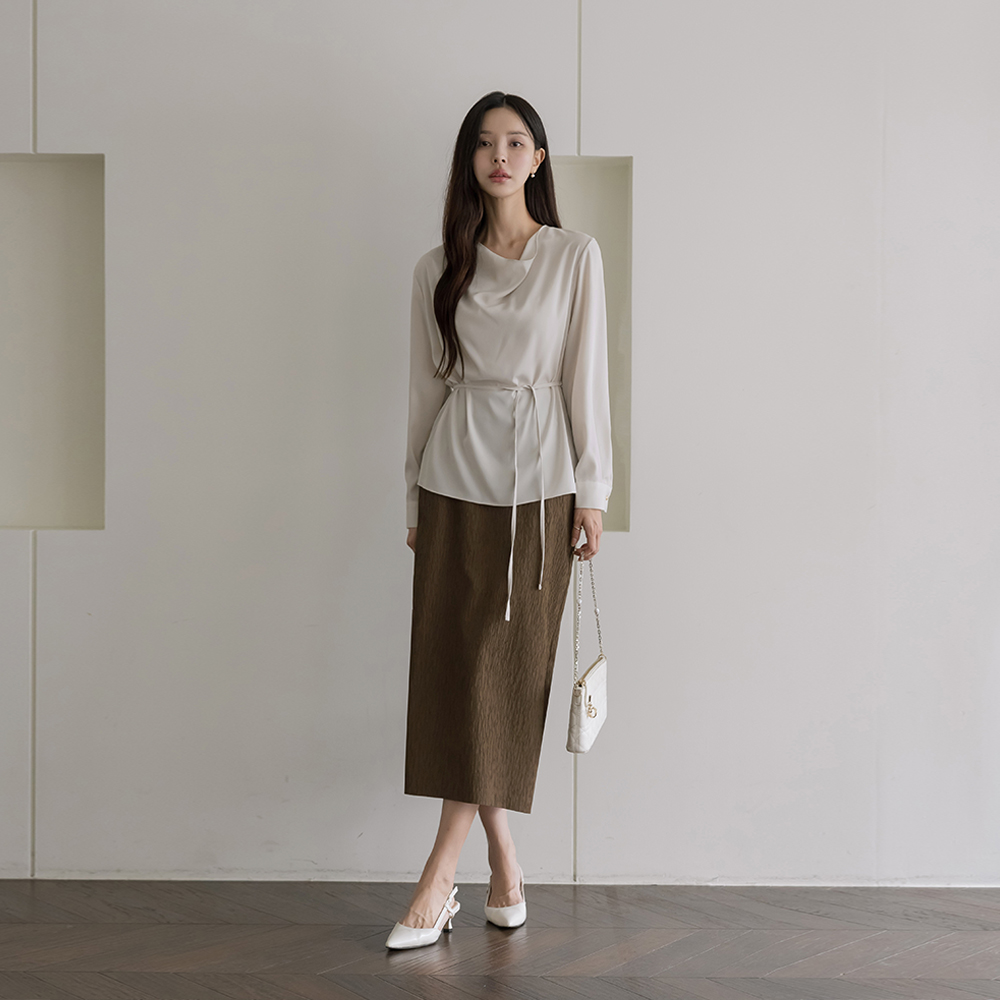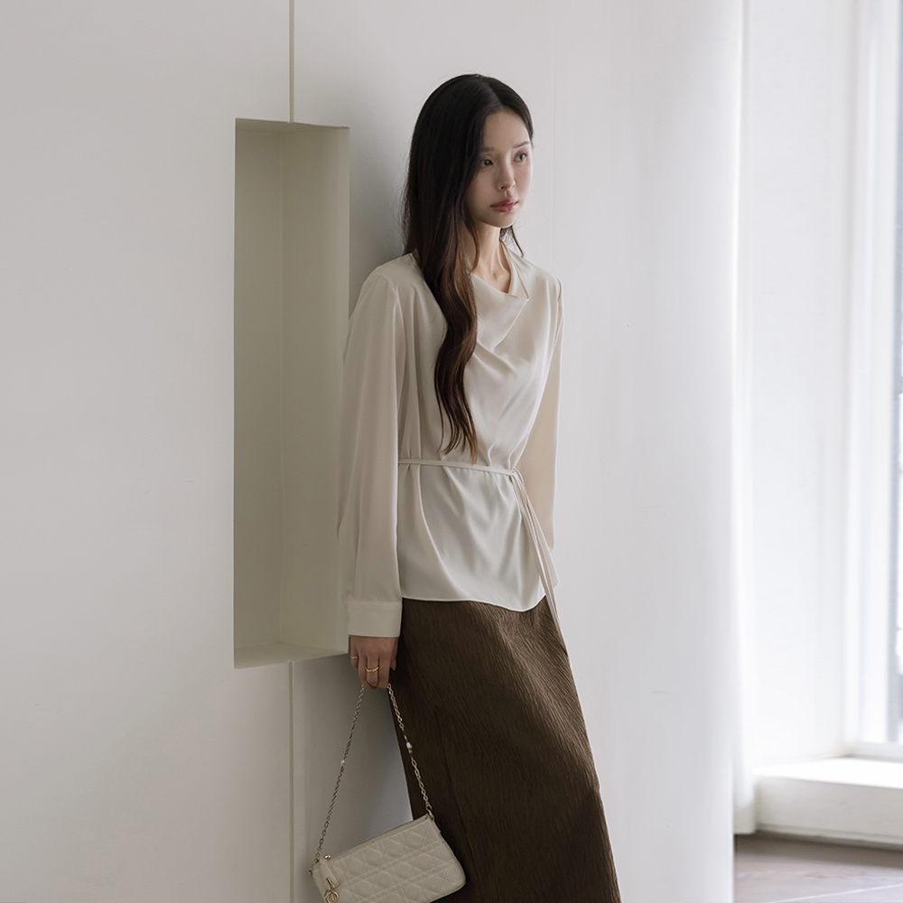 Mari Cowl Neck Long-sleeve Blouse(+Belt)