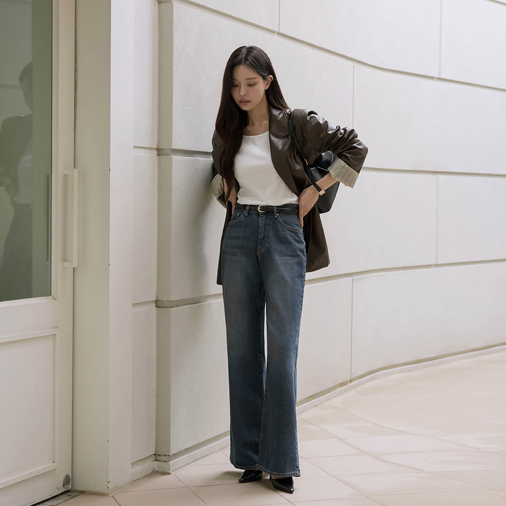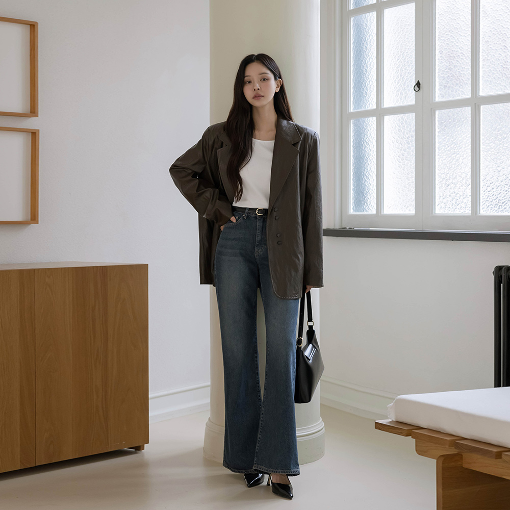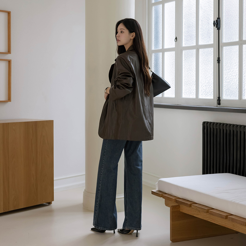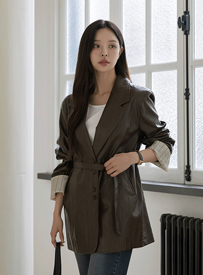 Sleeves Color Combination overfit Leather Jacket(+Belt)