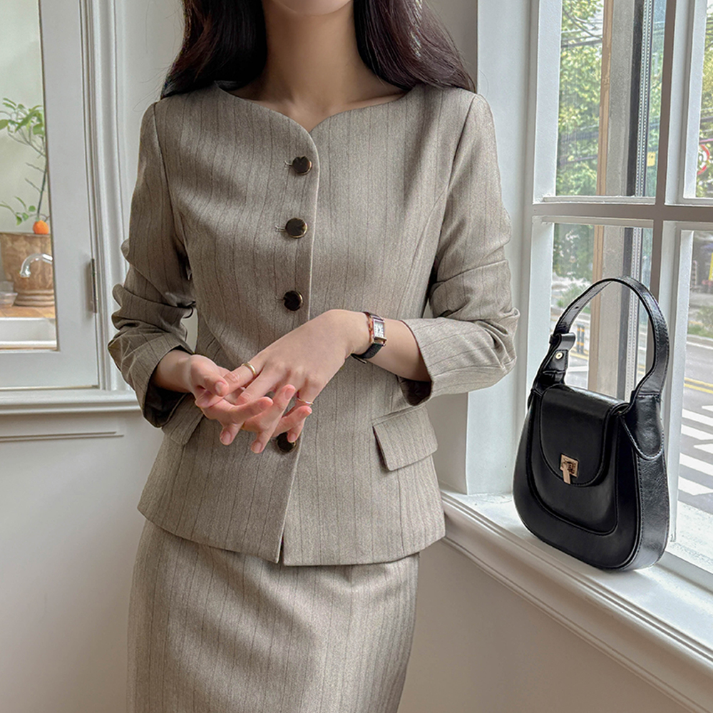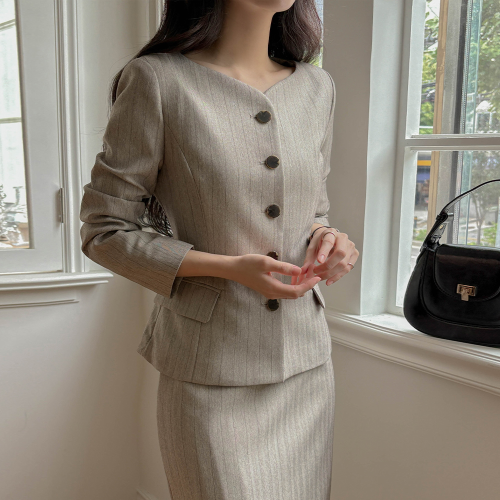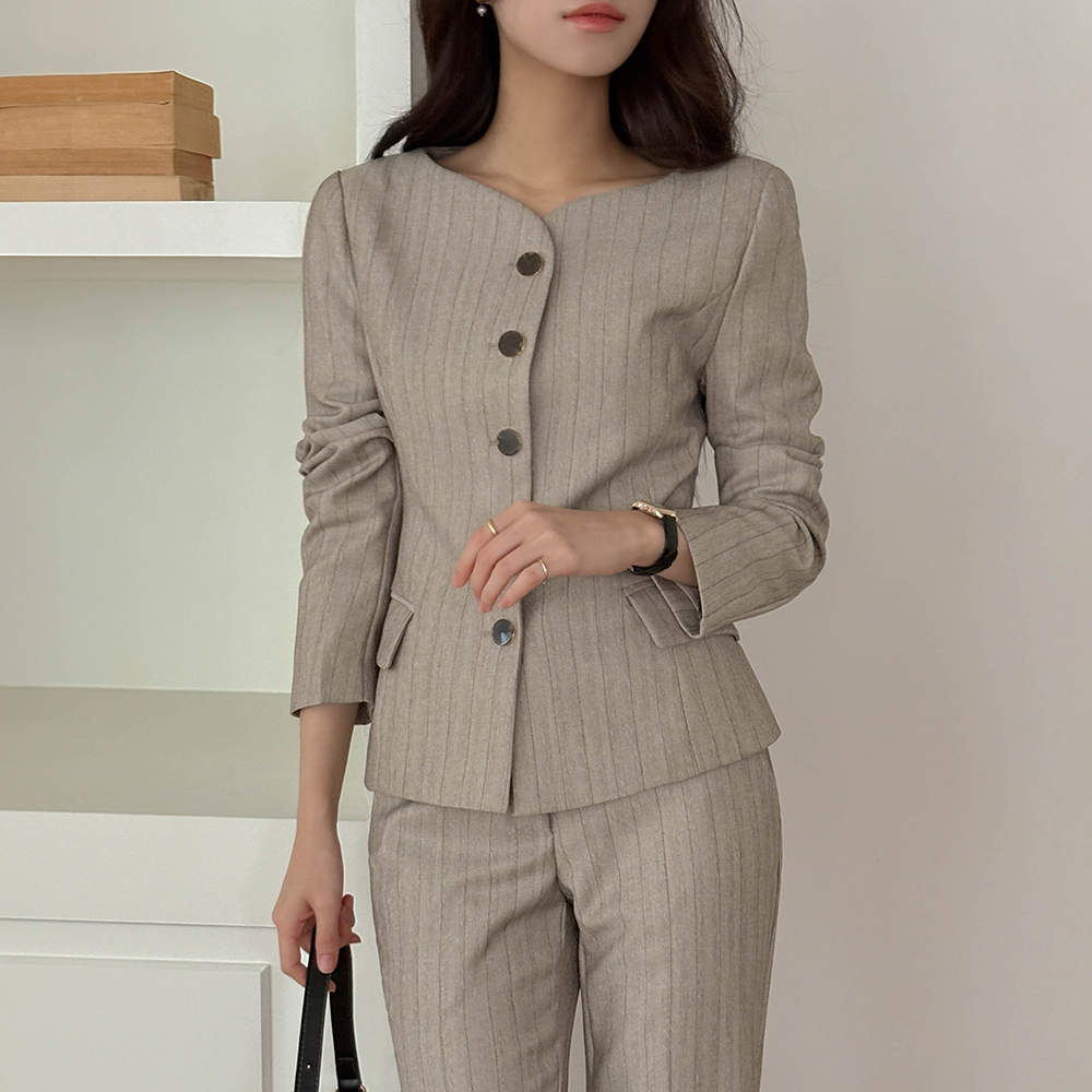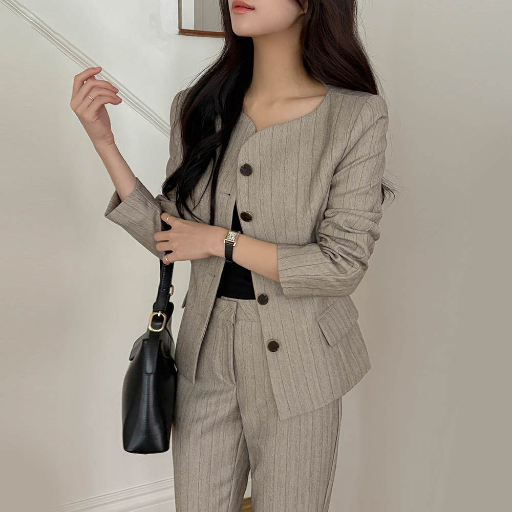 Stripe Slim Fit Set-up Slacks