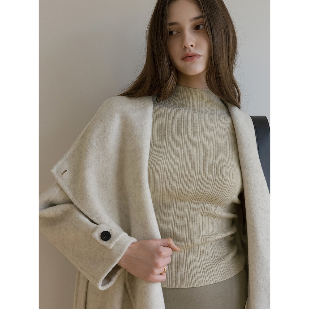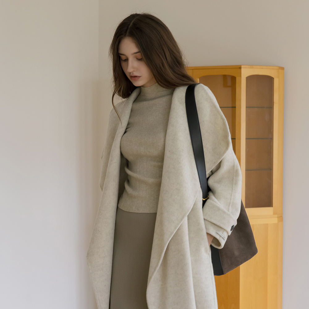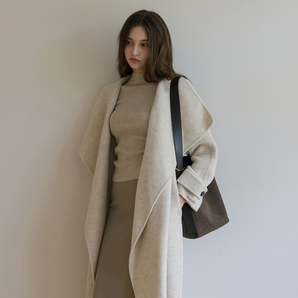 High-Neck Wool Hand-Made Long Coat(+Belt)