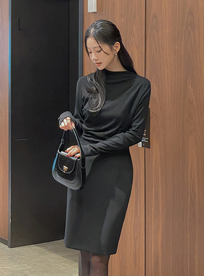 Half-Neck Draping Shirring T-shirt