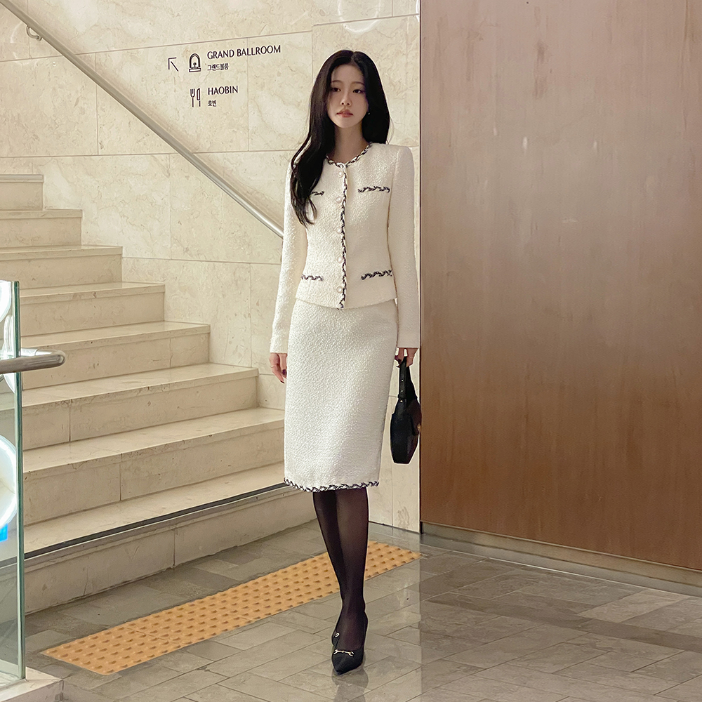 Color Combination Slim Fit Tweed Set-up Jacket