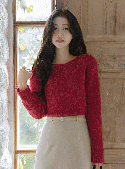 Lip-Neck slender Mohair Knit