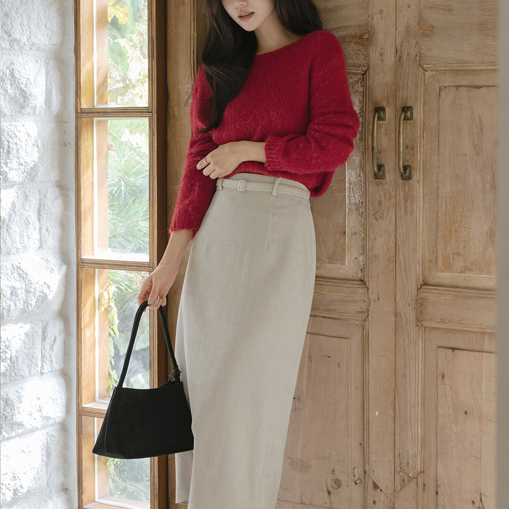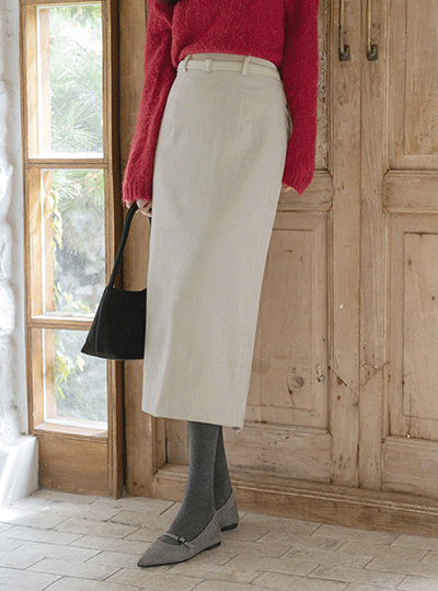 Velvet Belt Point Back Banding H-line Skirt