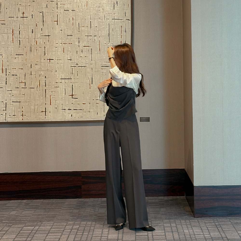 Stripe Wool Sleeveless shirts Knit&Cardigan SET