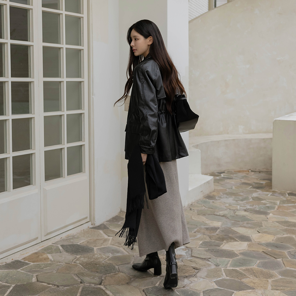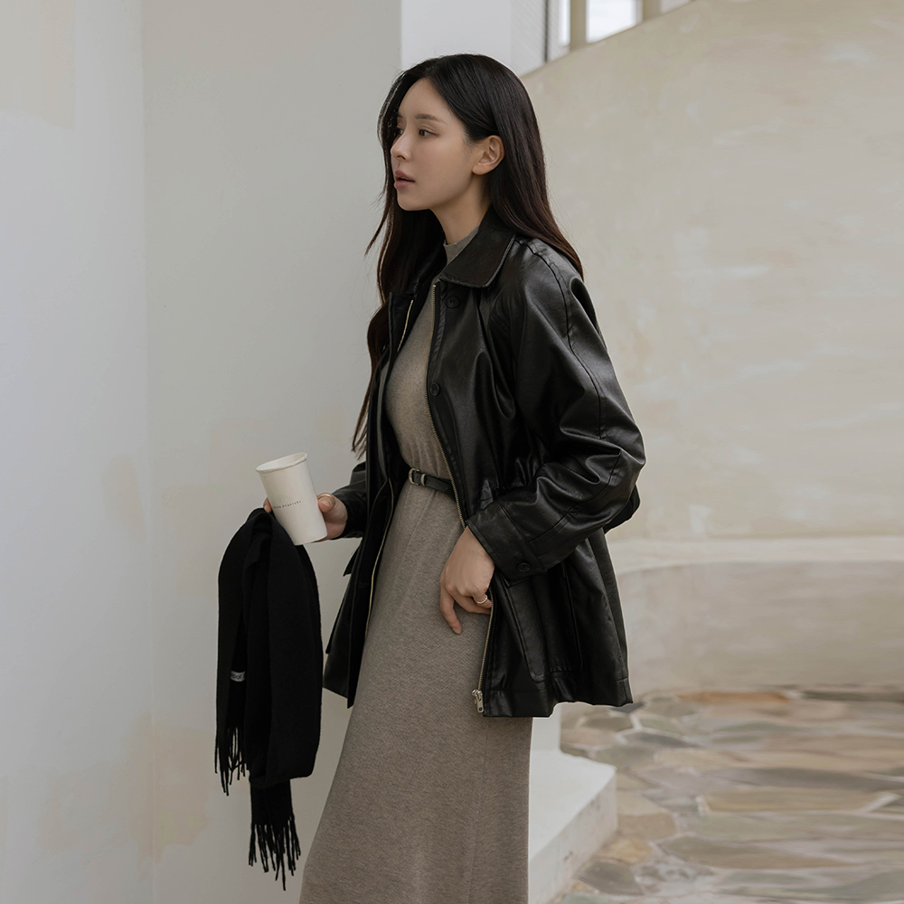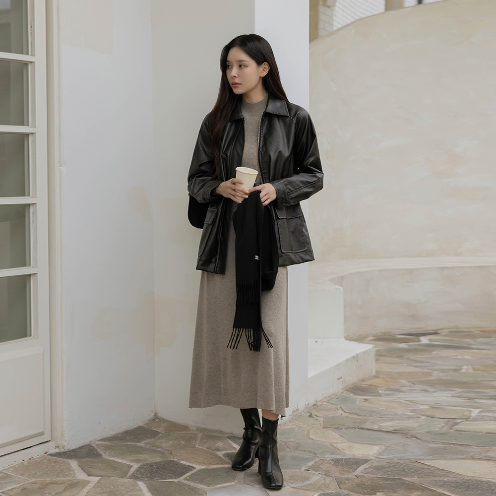 Half-Neck Natural Fit Wool Knit Long Dress(+Belt)
