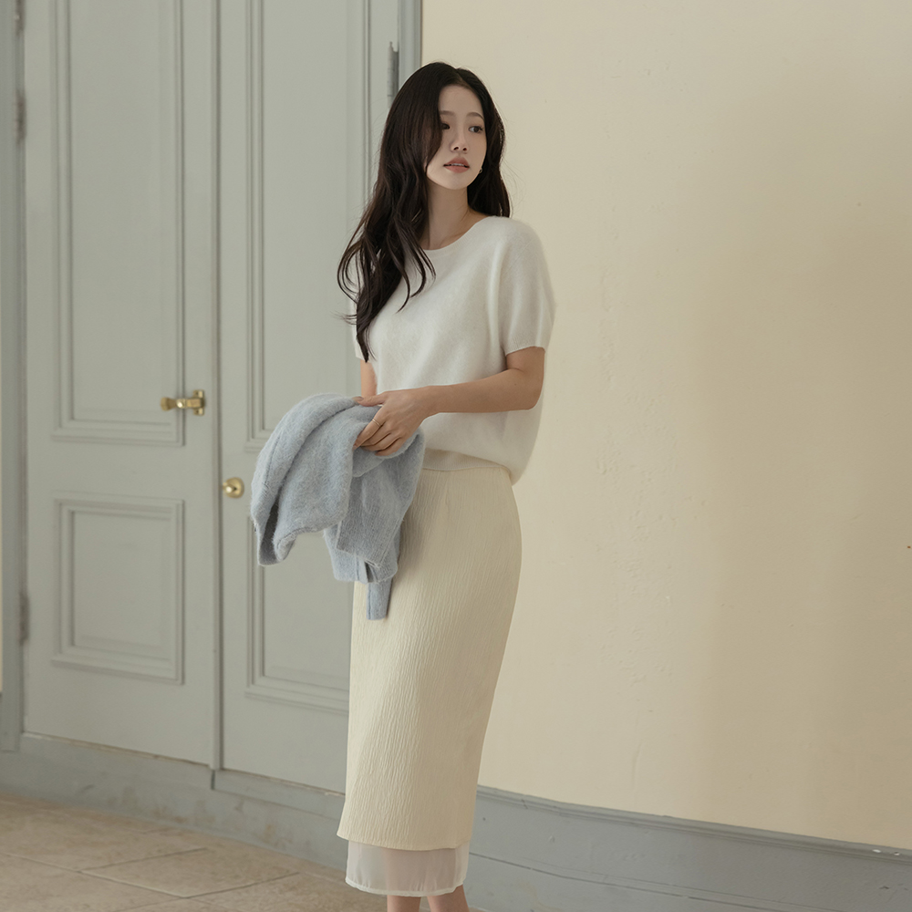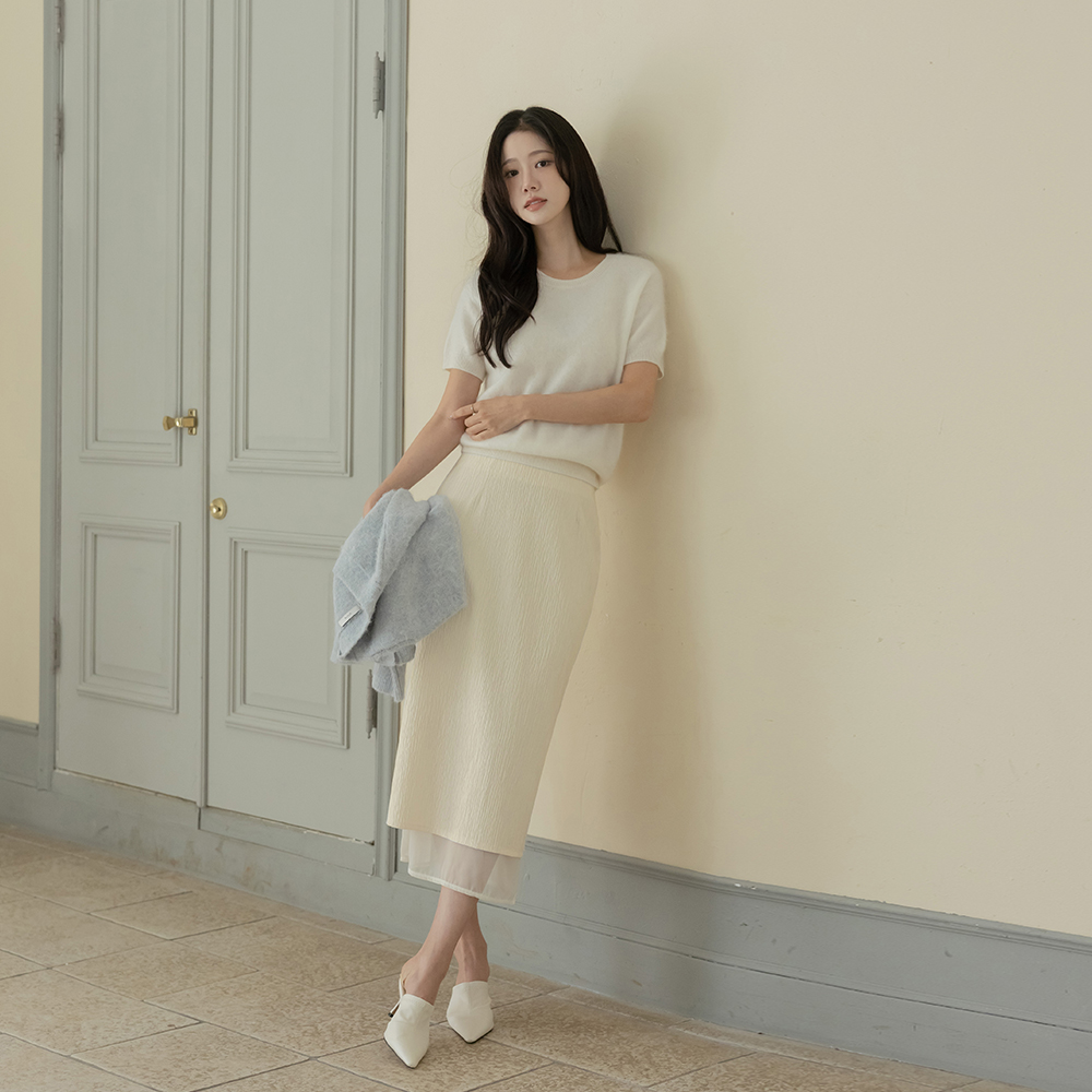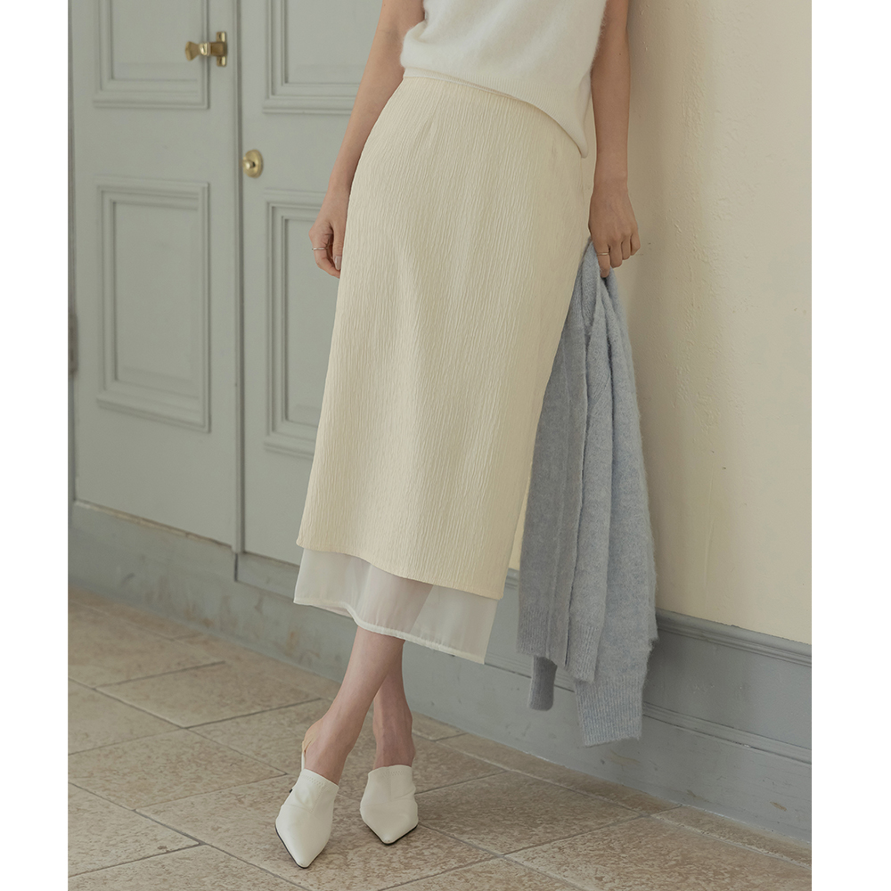 Wrinkle See-through Color Combination H-line Skirt