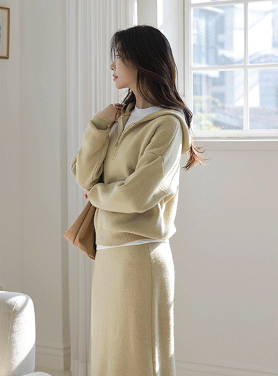 Easy Hood 반집업 Knit&Skirt SET
