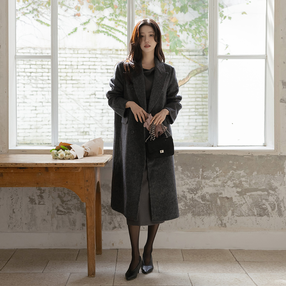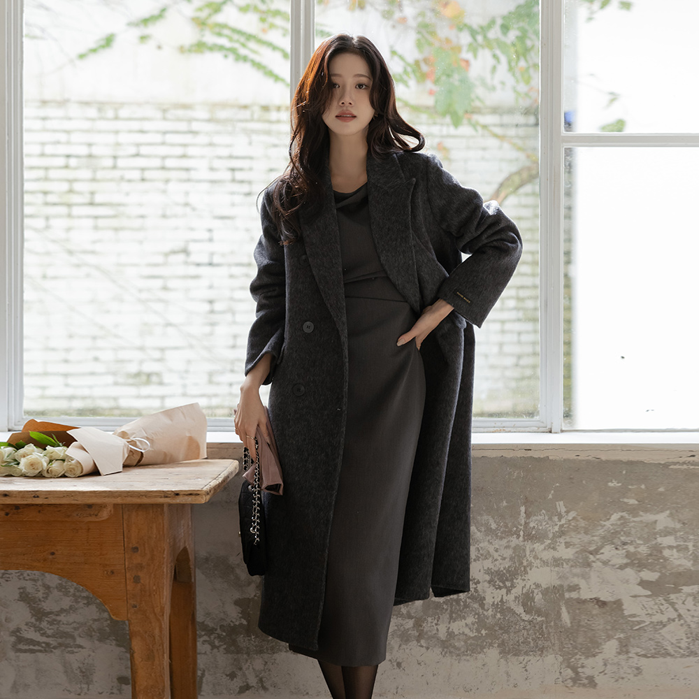 Shirring Slim Fit Wool H-line Dress
