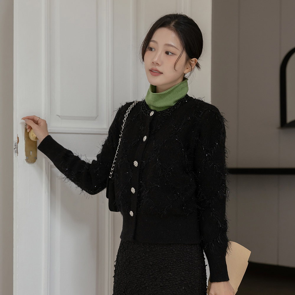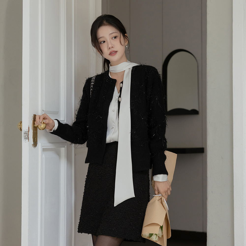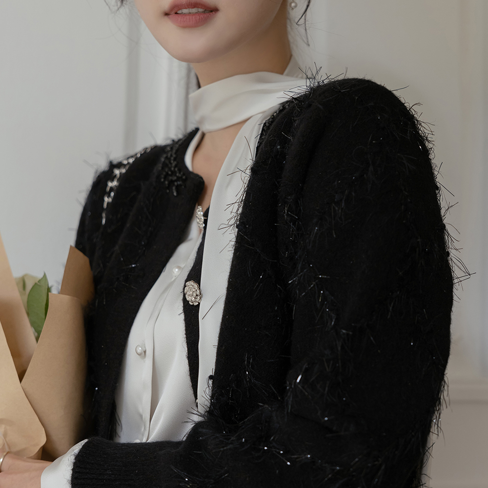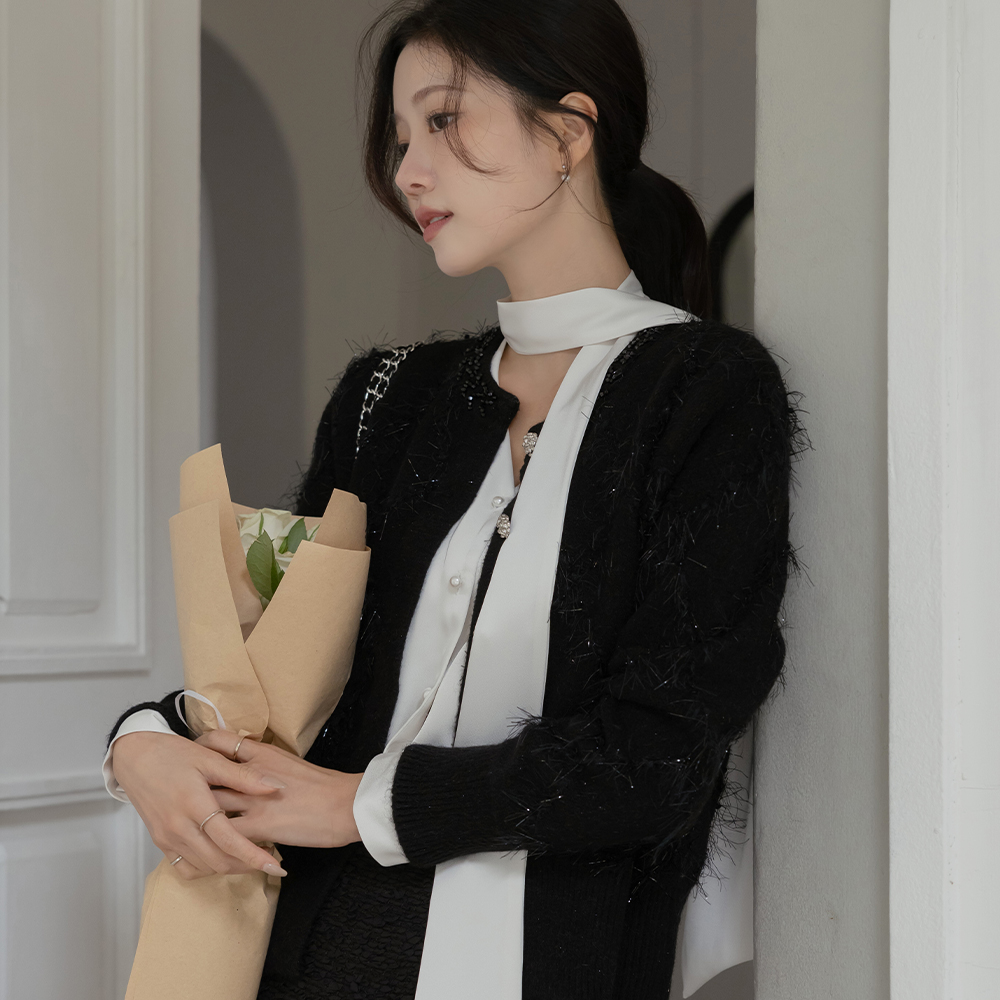 Glossy Scarf-Neck Pearl Button Blouse
