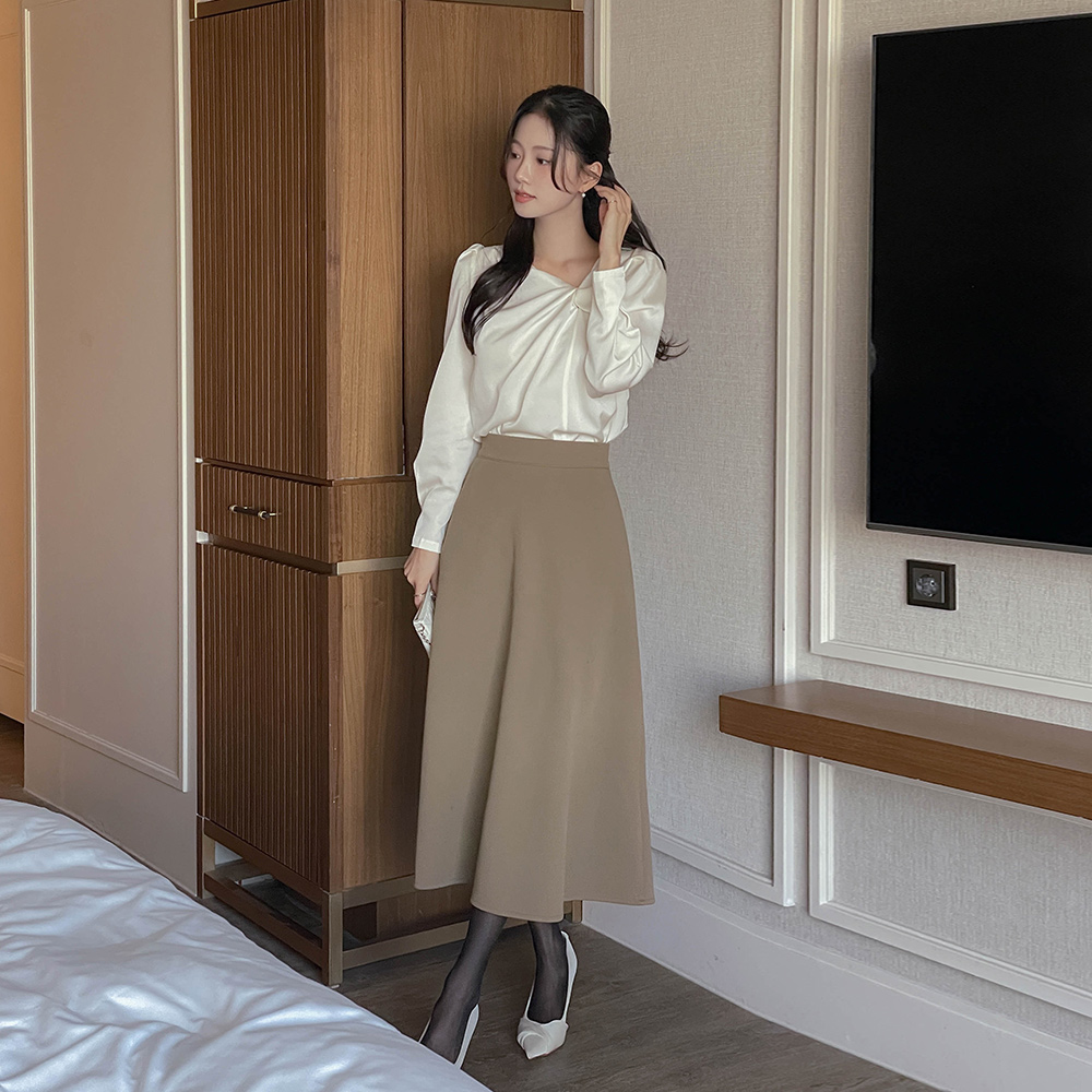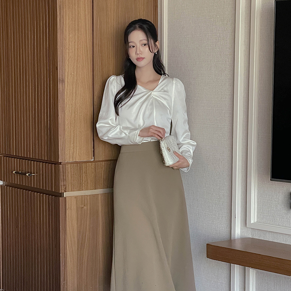 Romantic Twist-Neck Long-sleeve Blouse